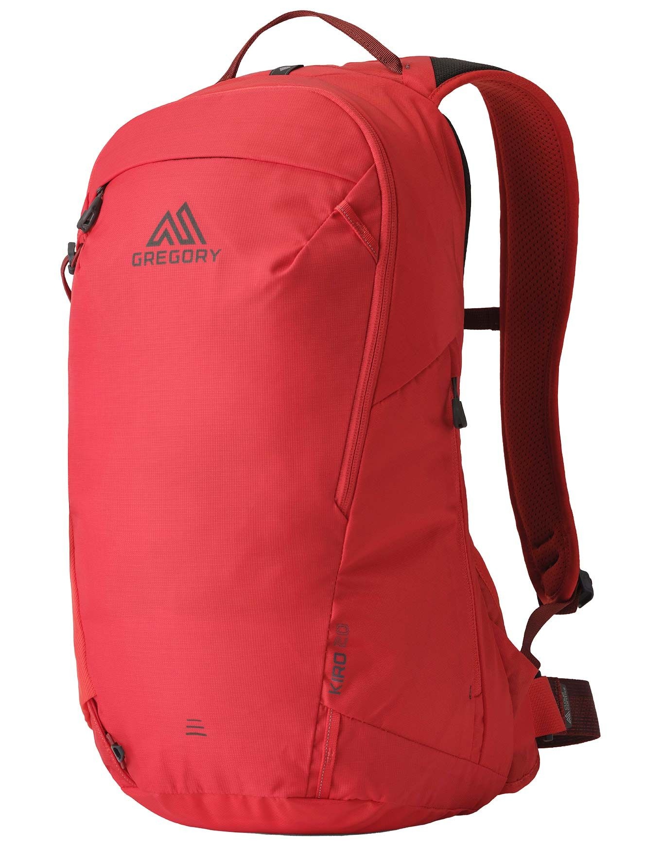 Sac à dos Gregory Kiro 20 Rc Lava Red conçu pour le fast-hiking : dos en mousse 3D perforée pour la respirabilité, ceinture élastique, accès frontal complet, compartiment PC/hydratation, housse antipluie intégrée.
