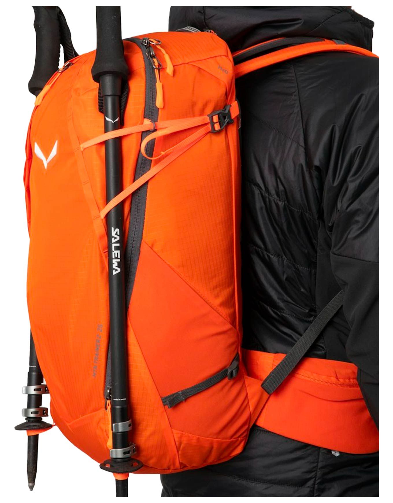 Sac à dos de randonnée Salewa Mtn Trainer 2 25 Red Orange, 25 L en nylon, système Dry Back Contact 3D, bretelles ergonomiques, sangle corde, portes-piolets et bâtons.