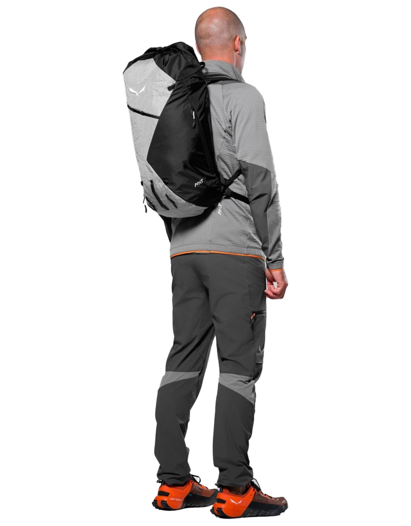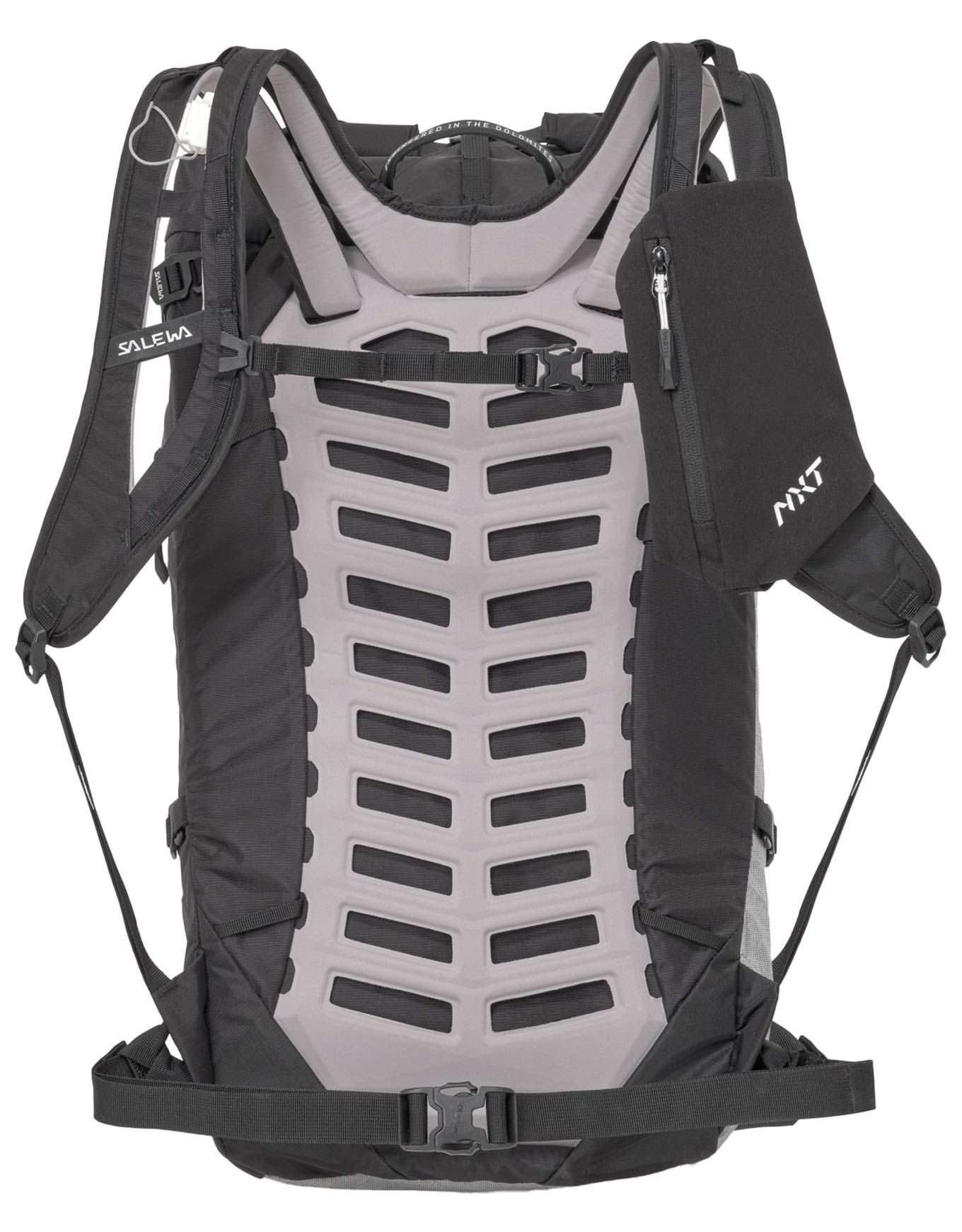 Sac à dos technique Salewa Nxt 32L Alloy/Black pour l’alpinisme polyvalent : tissus Challenge ULTRA 100X et Robic 330D, dos ventilé Dry Back Contact, 32 L, fixes ski, casque, piolet.