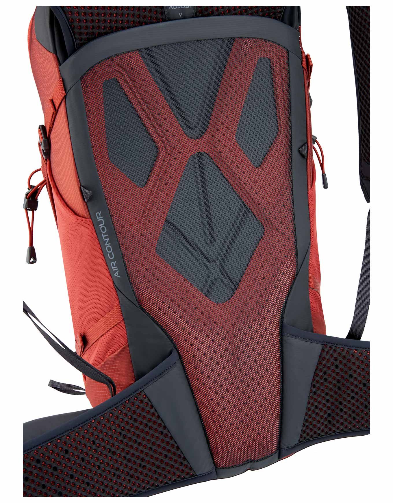 Le dos Air Contour™, réglable de 48 à 53 cm, s’ajuste à différentes morphologies. Cette architecture conjugue stabilité, confort et efficacité du transfert de charge, tout en préservant une amplitude de mouvement complète. Le maintien est garanti même lors d’efforts soutenus grâce au panneau dorsal en ABS et à la ceinture modulable.
