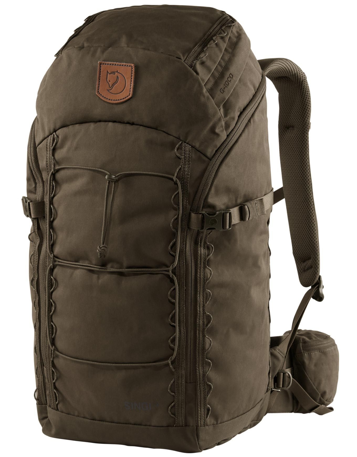 Sac à dos Fjällräven Singi 28 Dark Olive en G-1000® HeavyDuty Eco S, imperméable, compartiment laptop/hydratation, extensible, confortable en randonnée comme au quotidien.