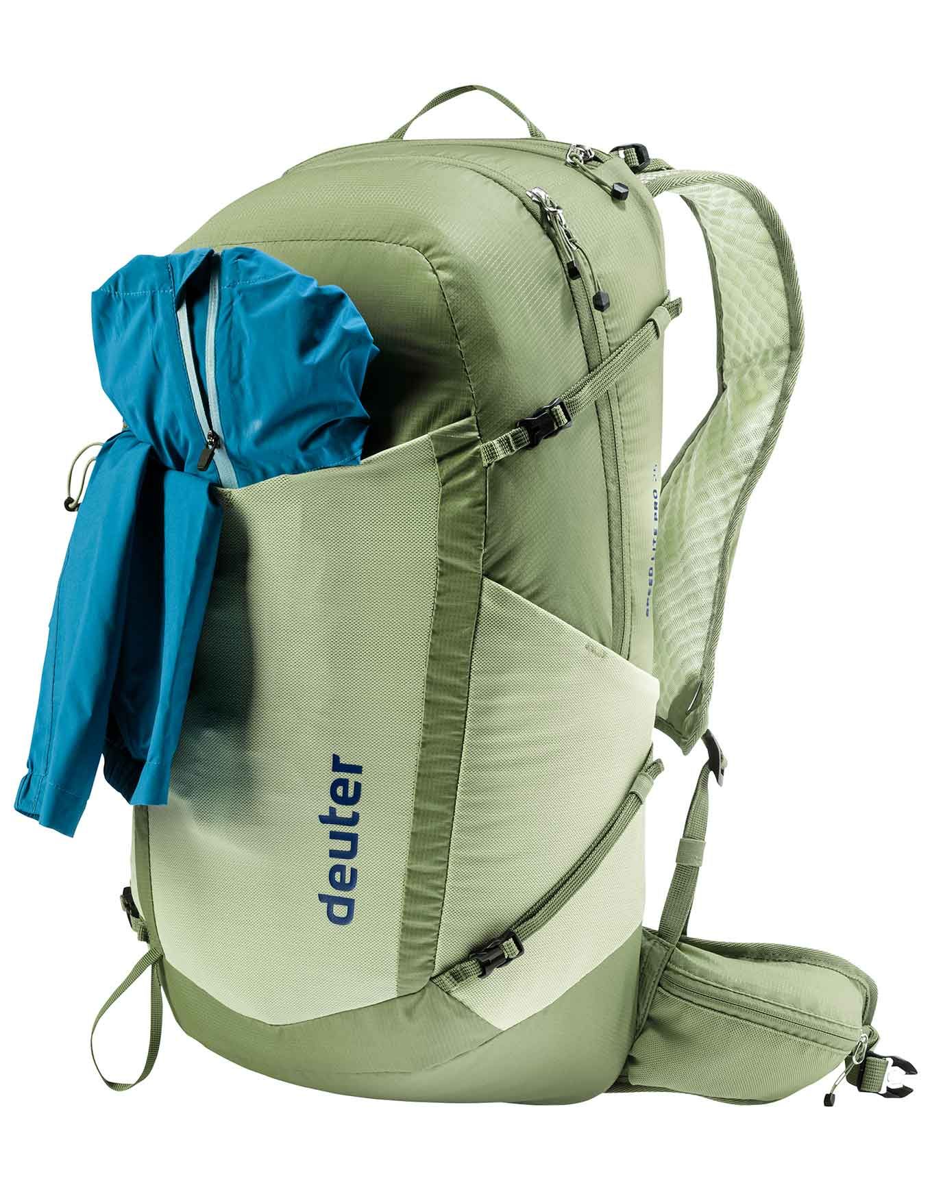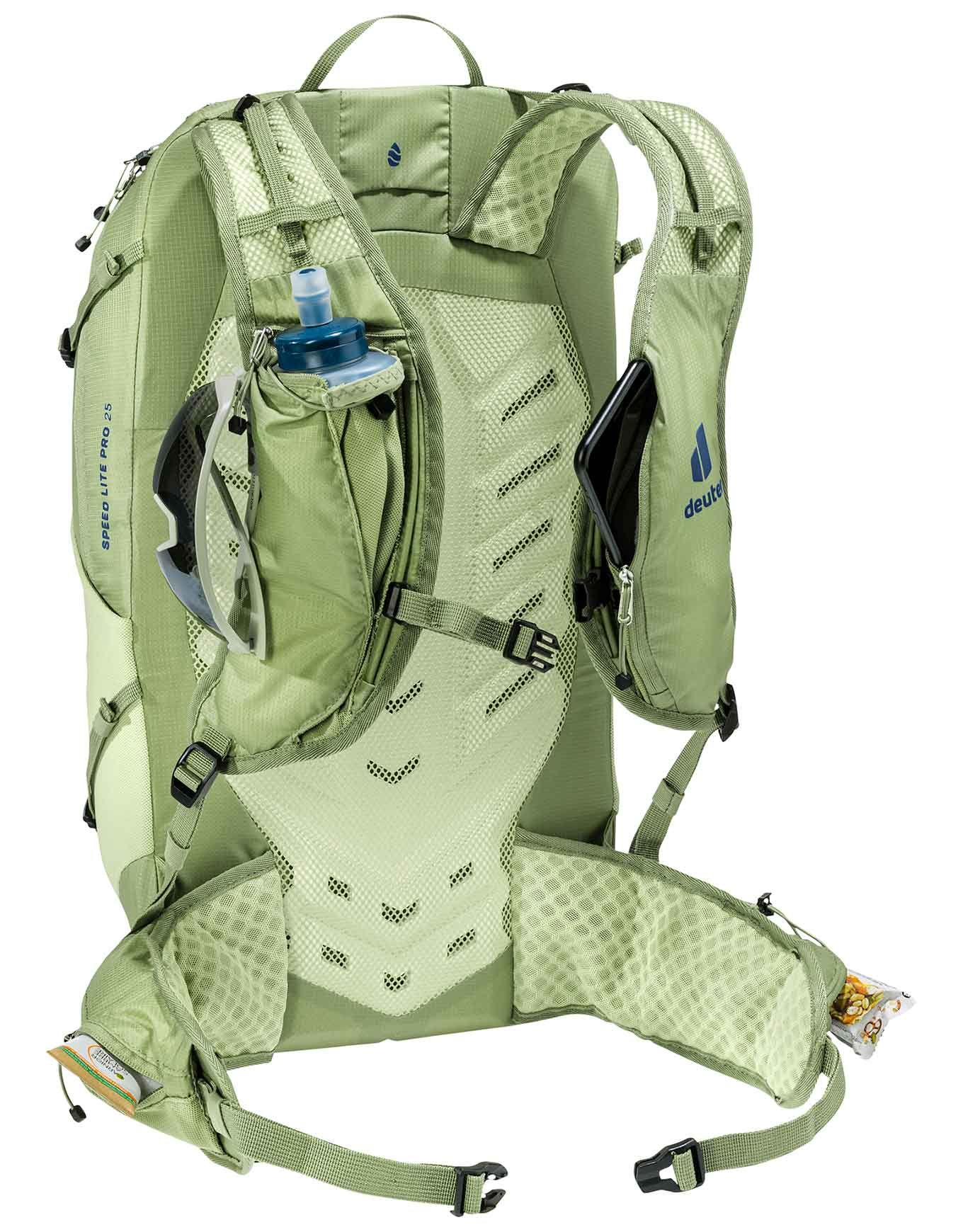 Sac à dos Deuter Speed Lite Pro 25 Mineral Grove, ultraléger 25 L pour randonnée rapide : système dorsal LiteAir aéré, bretelles ergonomiques, stabilisateurs hanche aérés, pochettes stratégiques, fixation bâtons instantanée, compatibilité poche hydratation 3 L.