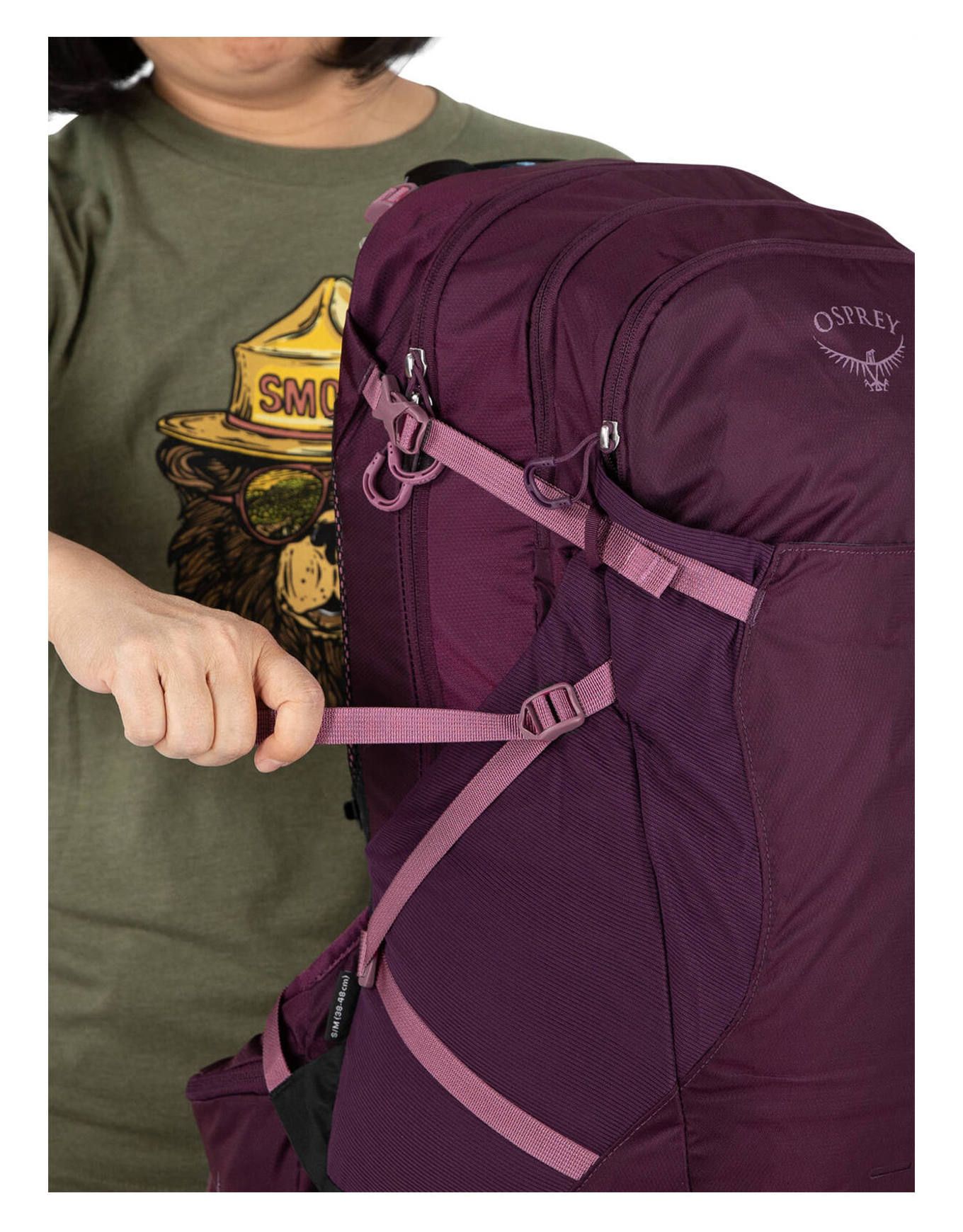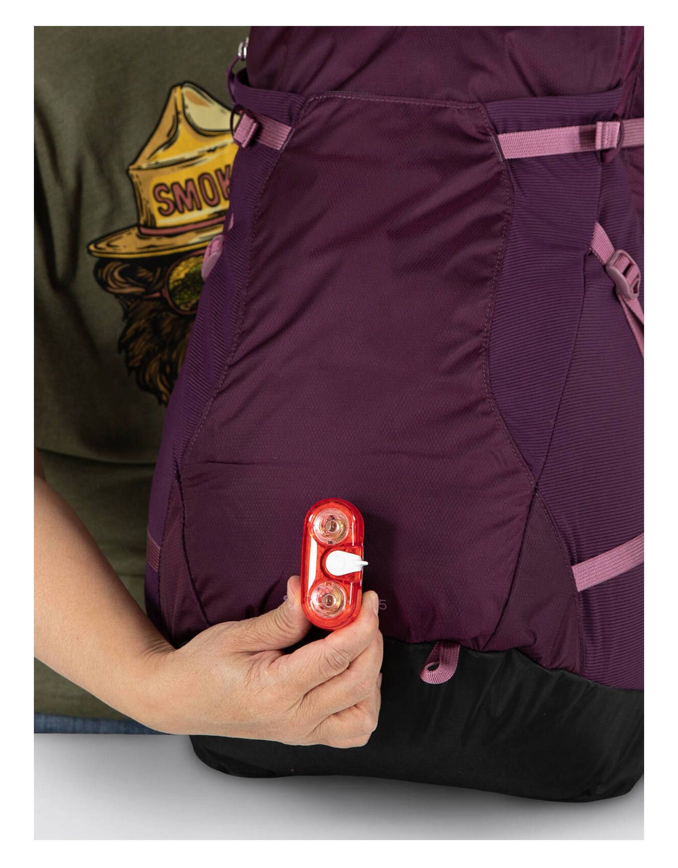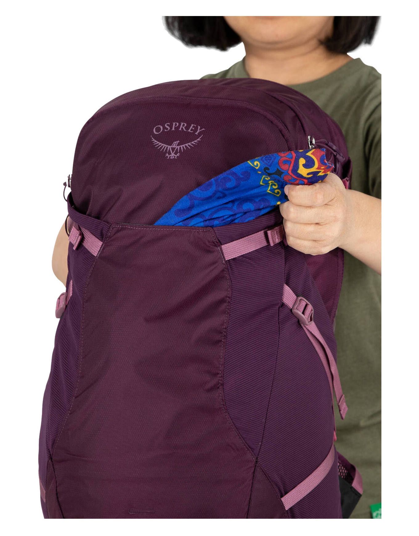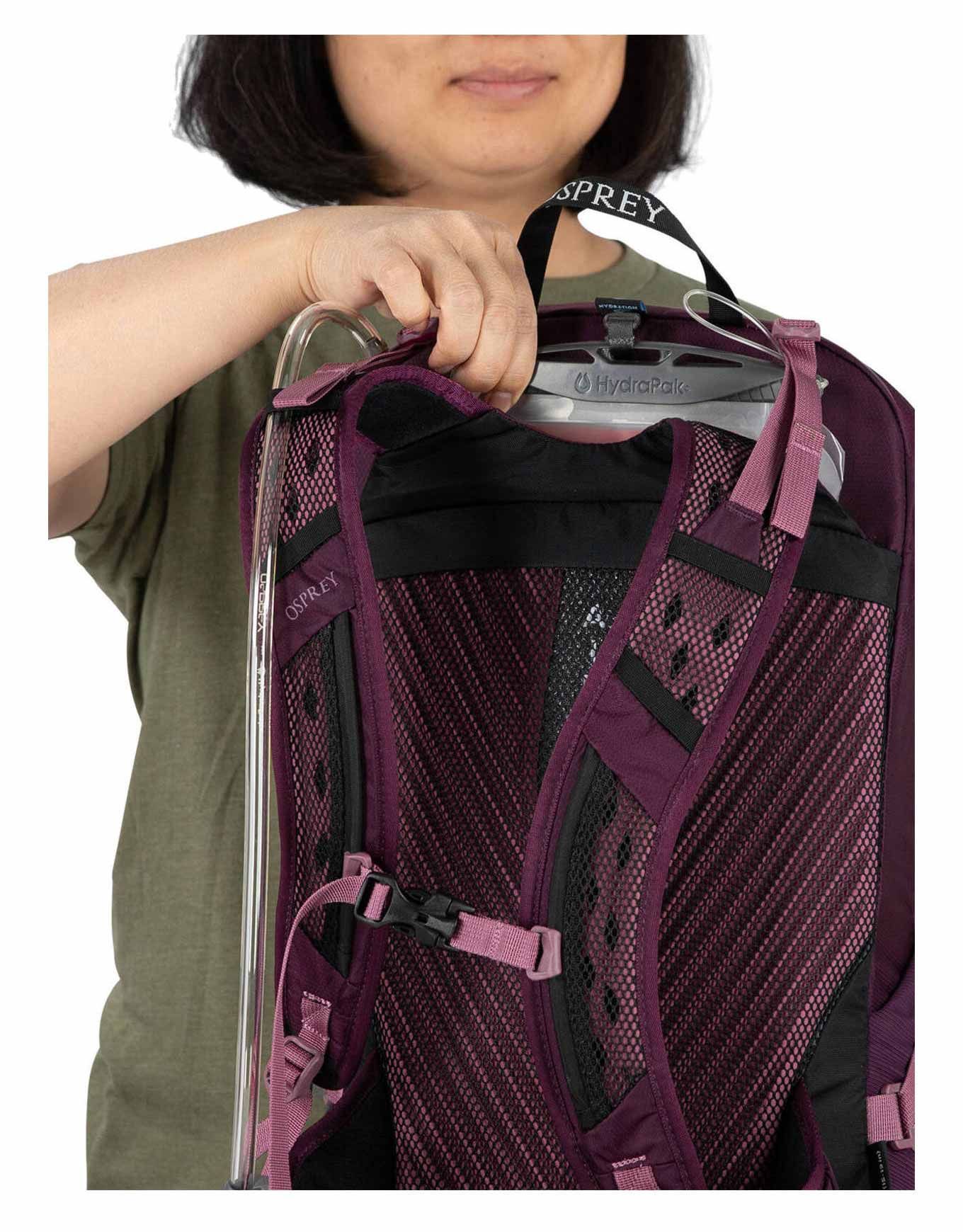 Conçu de manière minimaliste avec des matériaux 100 % recyclés, l’ensemble intègre néanmoins les fonctionnalités essentielles d’Osprey : poches extensibles, sangle sternale munie d’un sifflet intégré, sangles de compression, poche interne pour système d’hydratation avec passage de tuyau au-dessus des épaules, ainsi qu’une poche zippée en partie supérieure dotée d’un anneau porte-clés. Deux boucles sont prévues pour l’attache des bâtons de randonnée lorsqu’ils ne sont pas utilisés.