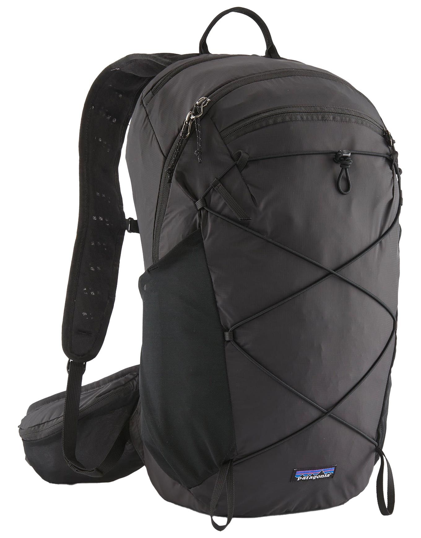 Sac Patagonia Terravia Pack 22 L en tissu recyclé, conçu pour la randonnée à la journée : panneaux dorsaux et bretelles Airmesh respirants, ceinture rembourrée, poche pluie incluse et compatibilité poche à eau.