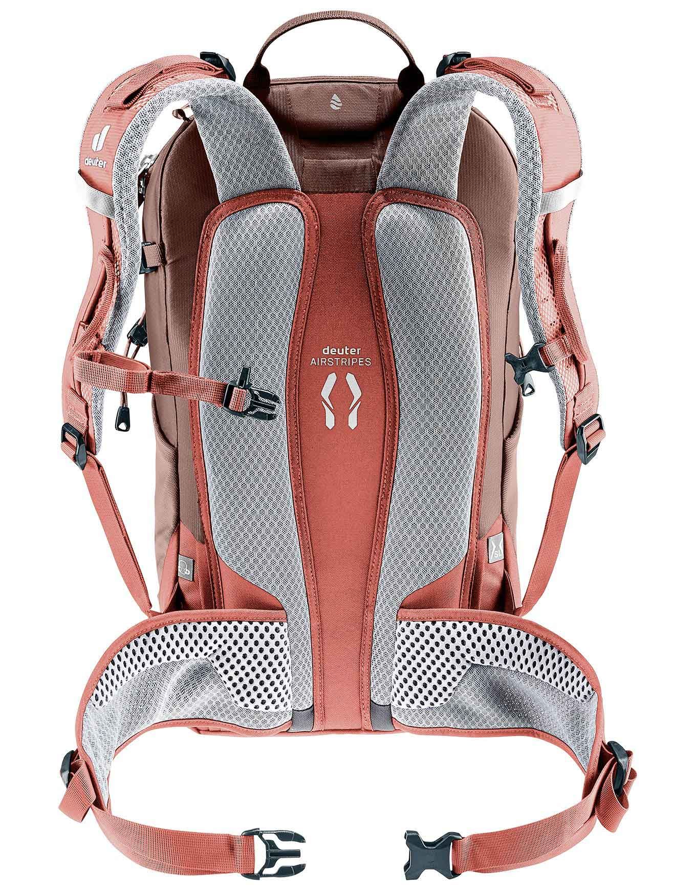 | DOS DEUTER AIRSTRIPES SYSTEM | Le maintien compact confère une grande stabilité au sac à dos, ce qui lui permet de rester en place même en cas de mouvements brusques. En outre, les coussins avec canaux d’aération garantissent une libre circulation de l’air sur plus de 80 % du dos grâce à la surface d’appui réduite. |