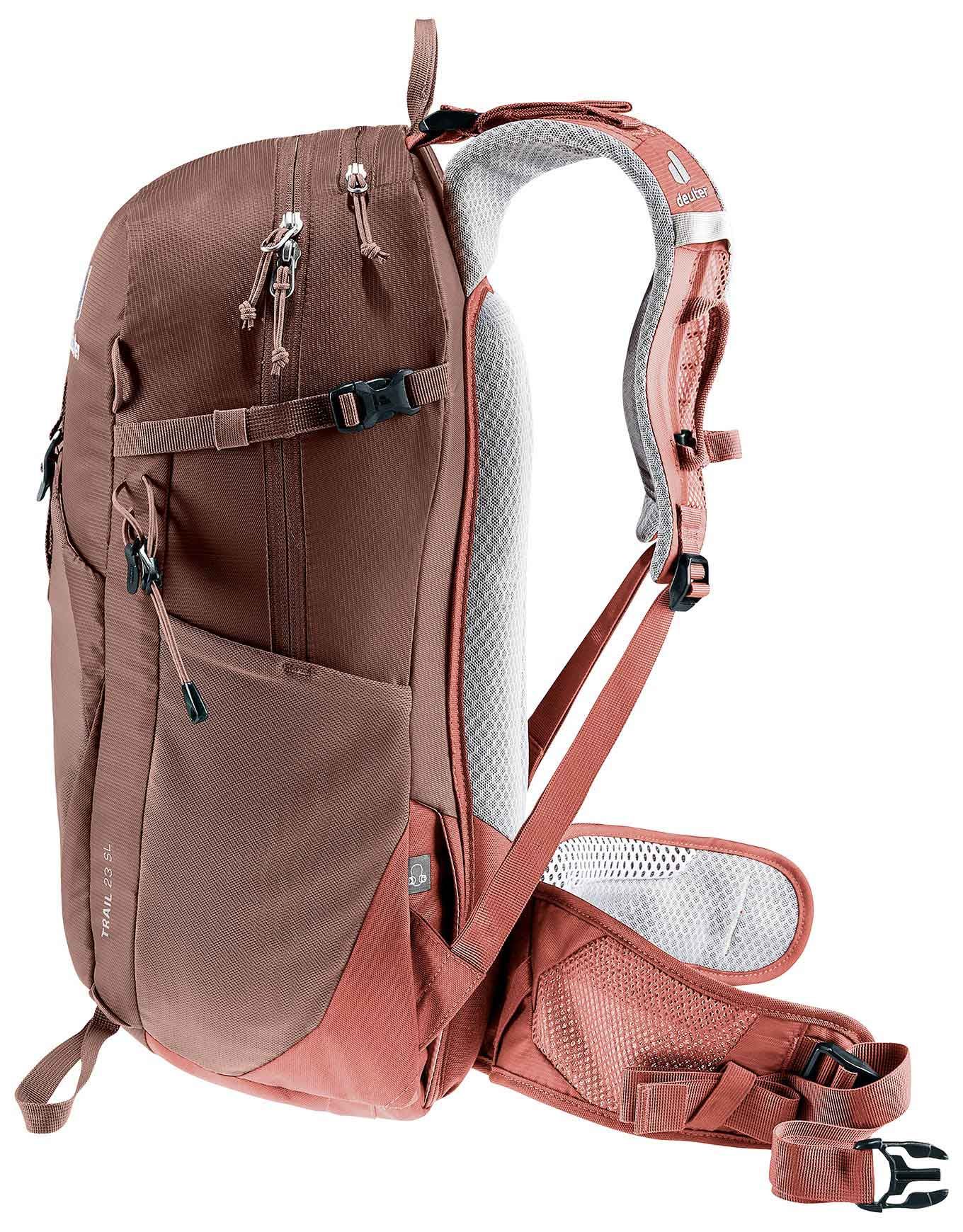 Sac à dos de randonnée femme Deuter Trail 23 SL Raisin Caspia, 23 L, dos court, bretelles étroites, ceinture adaptée, système Airstripes aéré, compartiments intelligents, fixations bâtons/piolets.