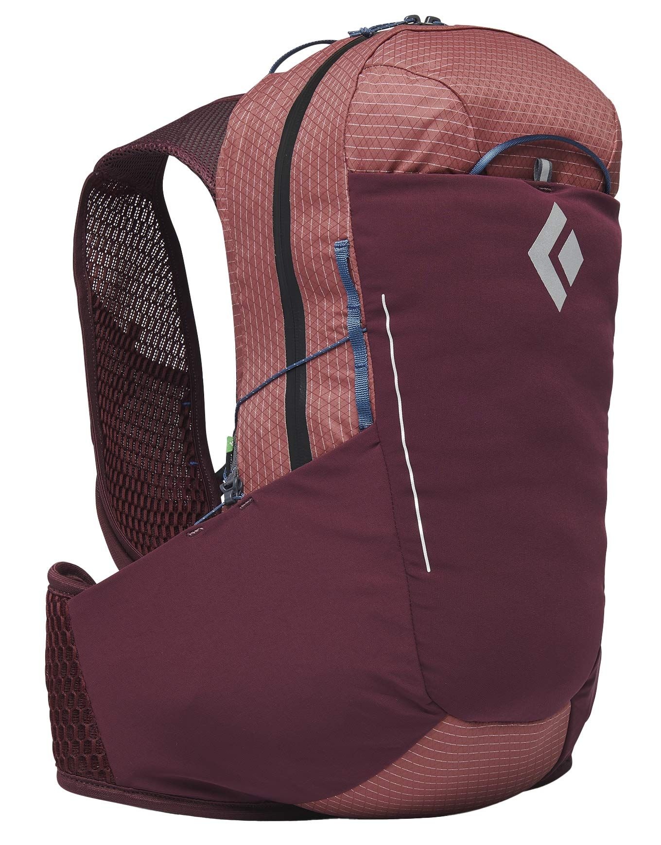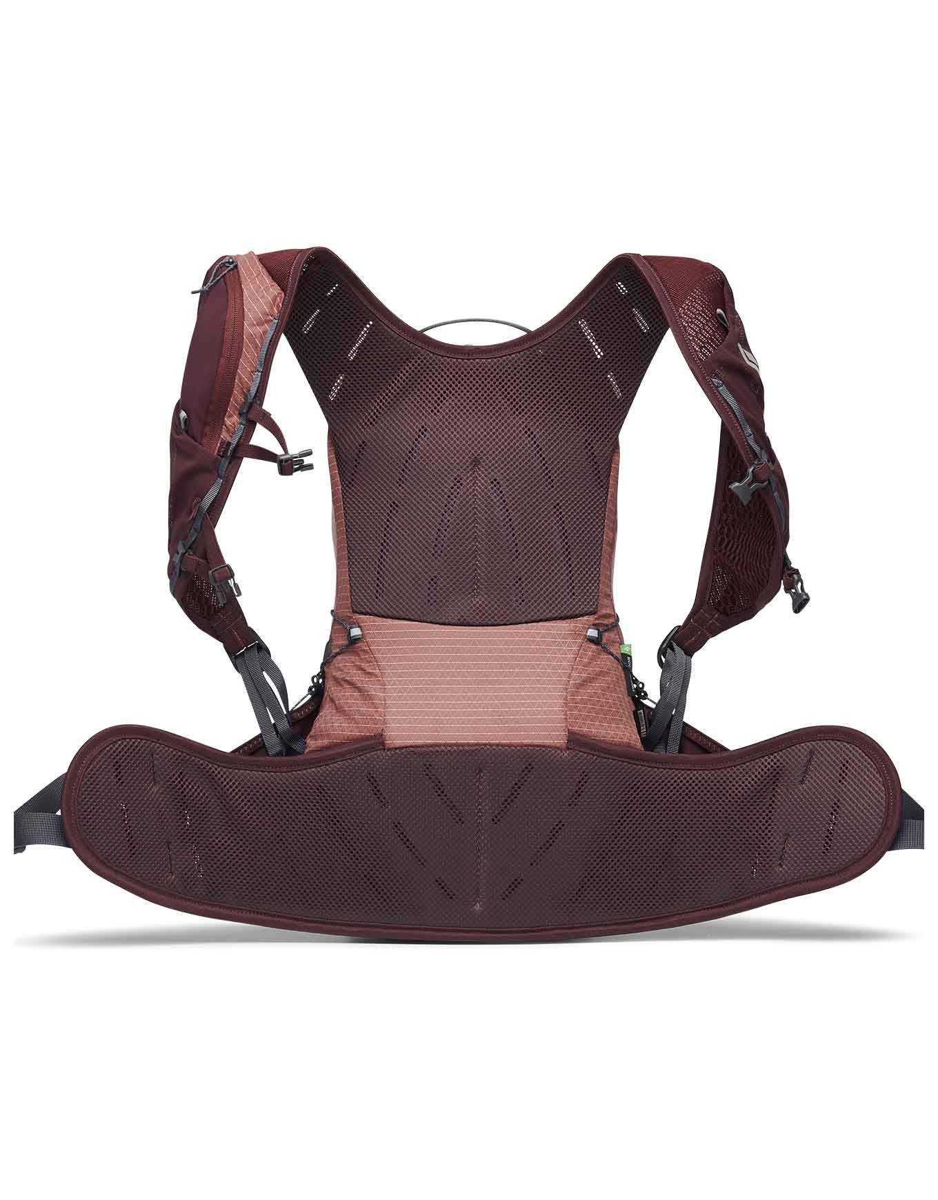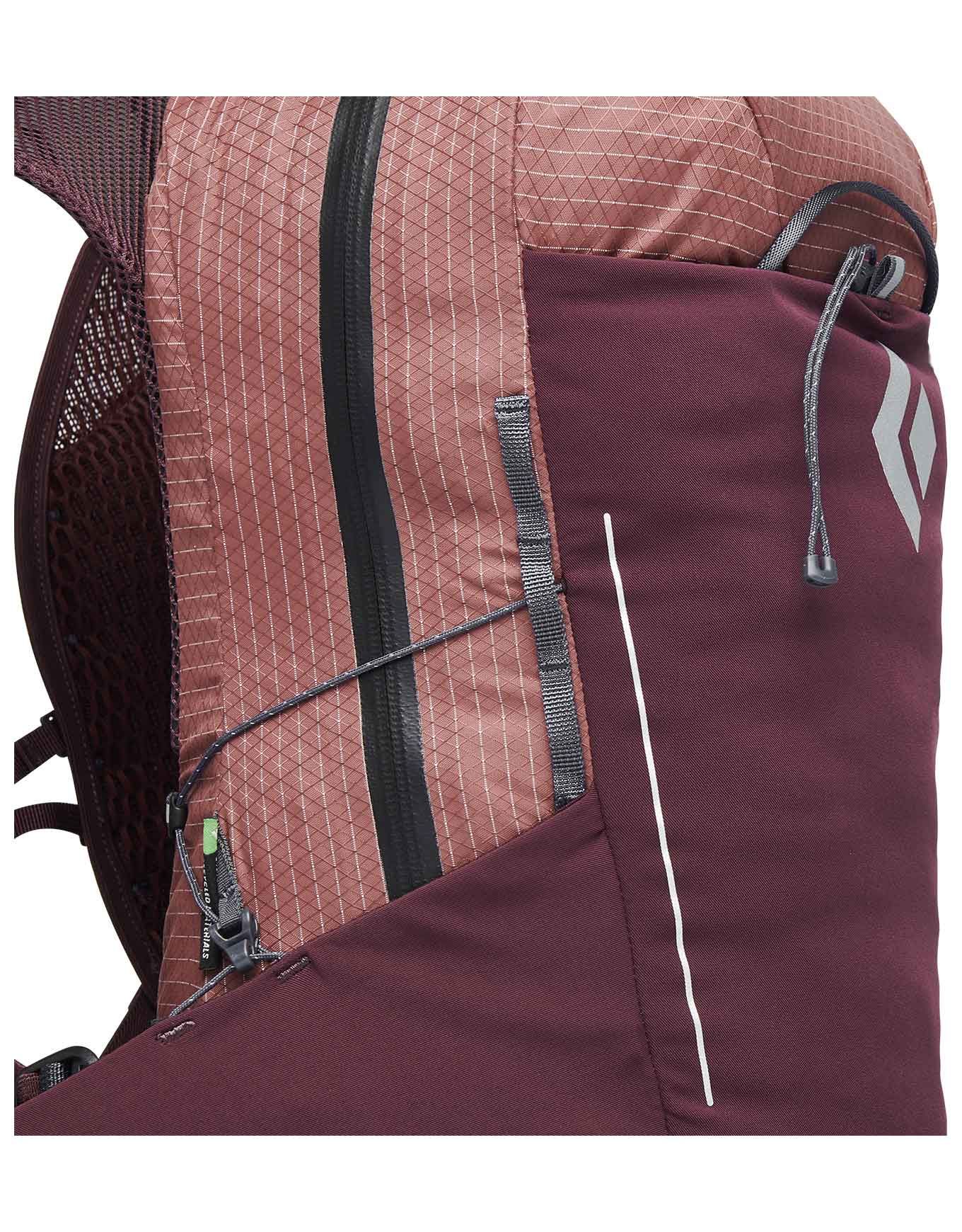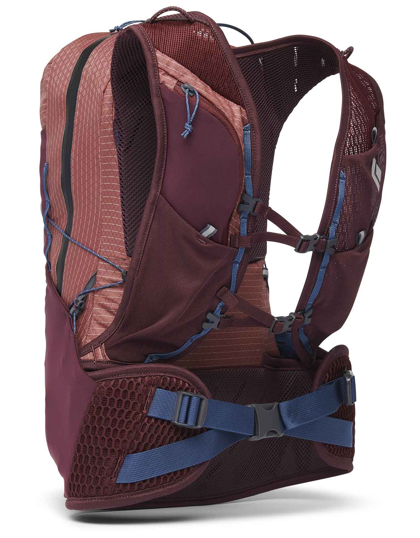 Sac à dos de randonnée Black Diamond W Pursuit 15 Cherrywood/Ink Blue pour femme, 15 L en polyester recyclé, harnais Continuous Fit sans couture, dos respirant, rangements bâtons et poche hydratation.