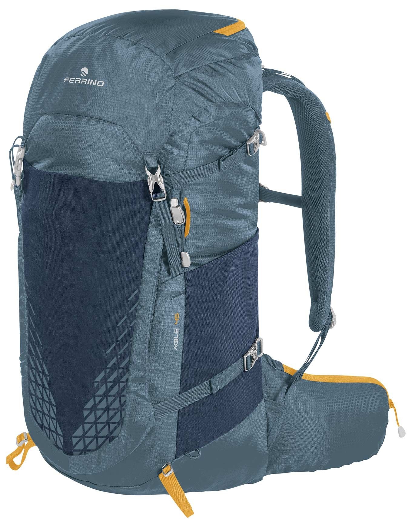 Sac à dos Ferrino Agile 45 Black, 45 L léger pour la montagne, doté du Hollow Back System pour confort et aération, accès zip fond, sangles piolets, poches ceinture et côtés, compatible hydratation.