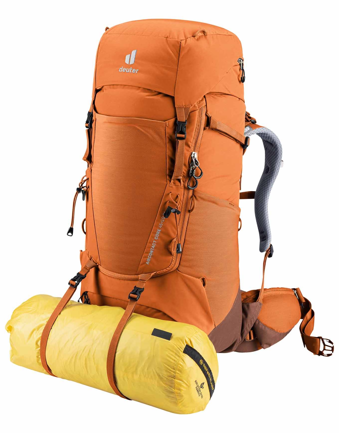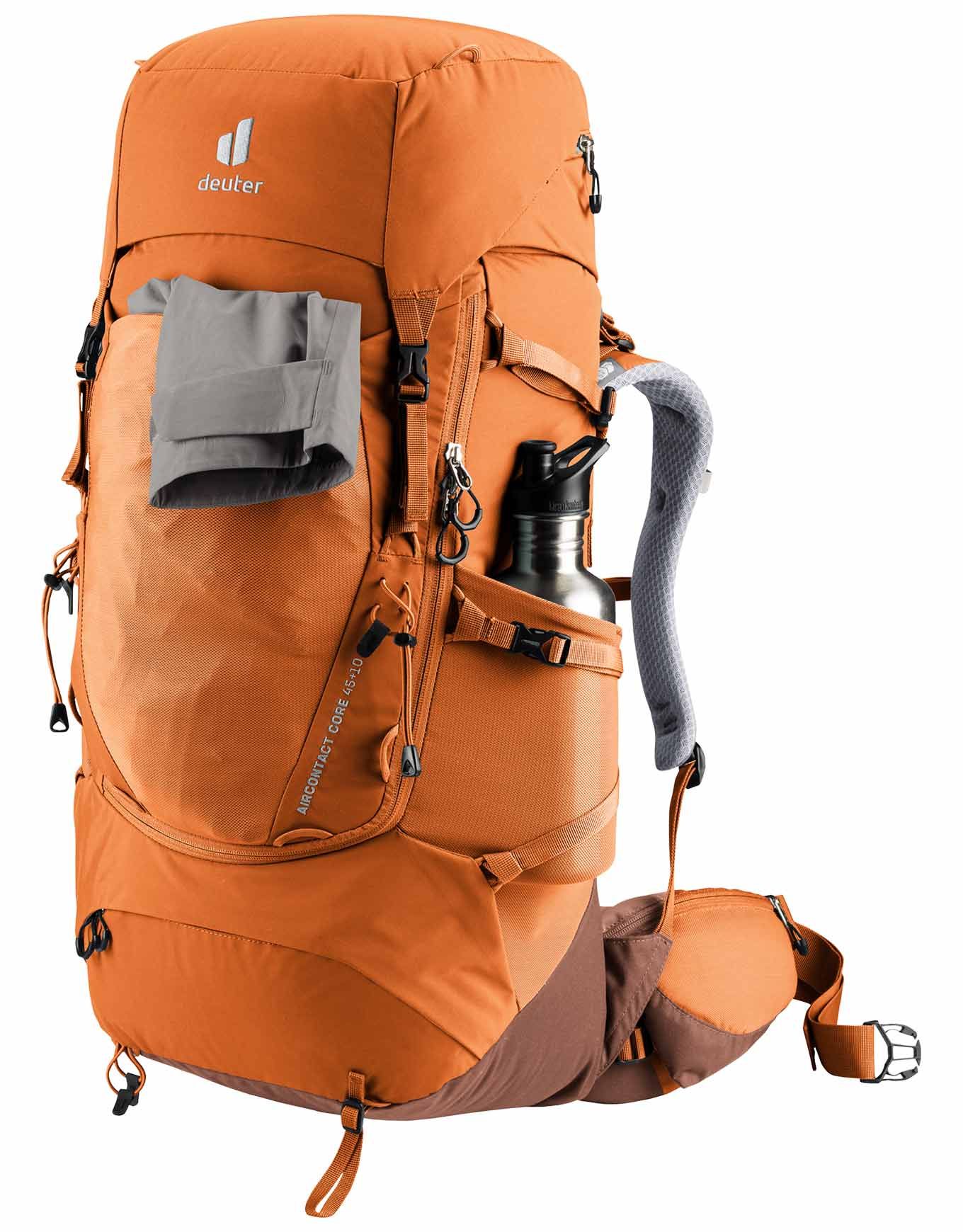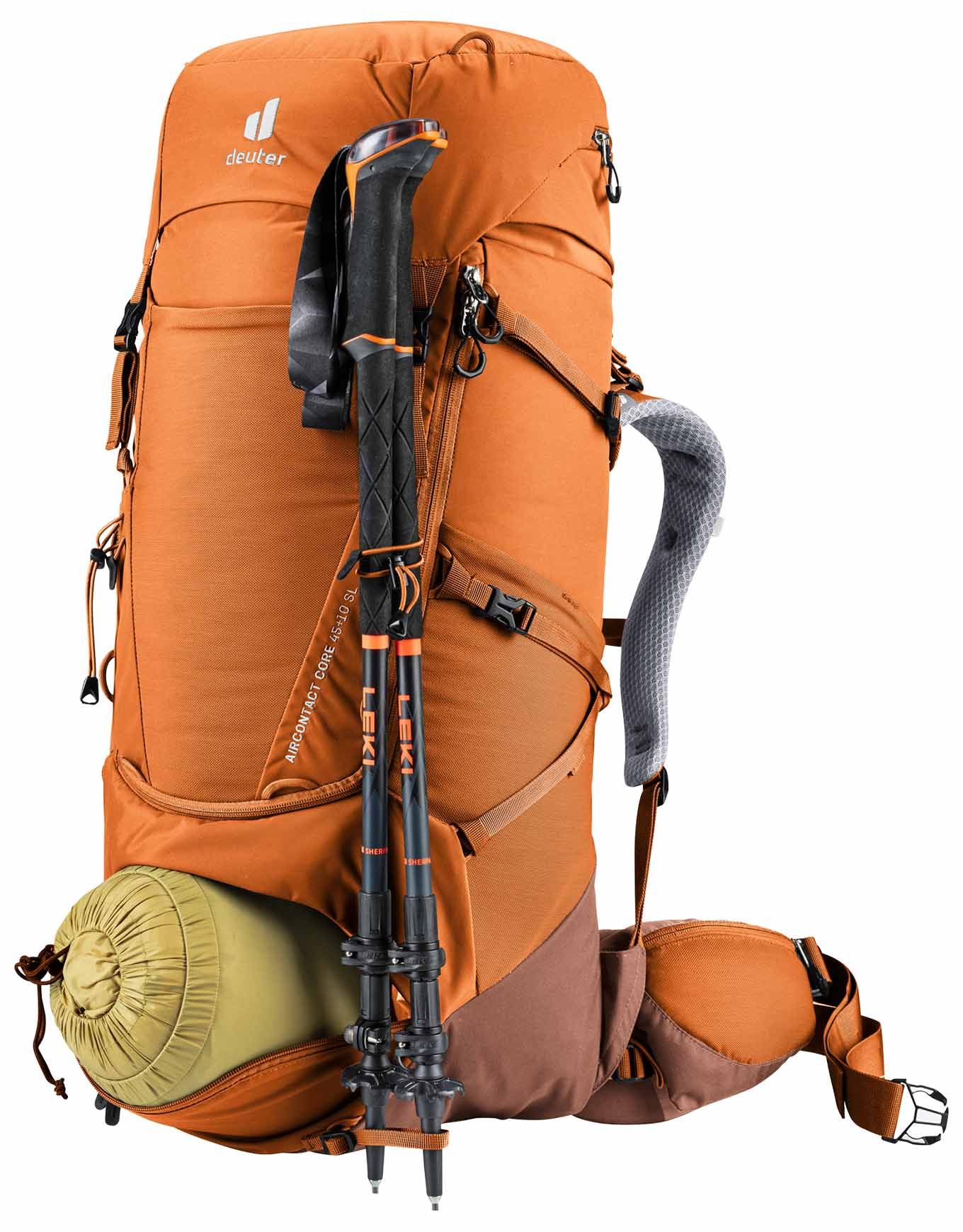 Sac à dos de trekking femme Deuter Aircontact Core 45+10 SL Chestnut Umbra, dos ajustable, ventilation Air Spacer Mesh, compartiment fond et poche eau 3 L.