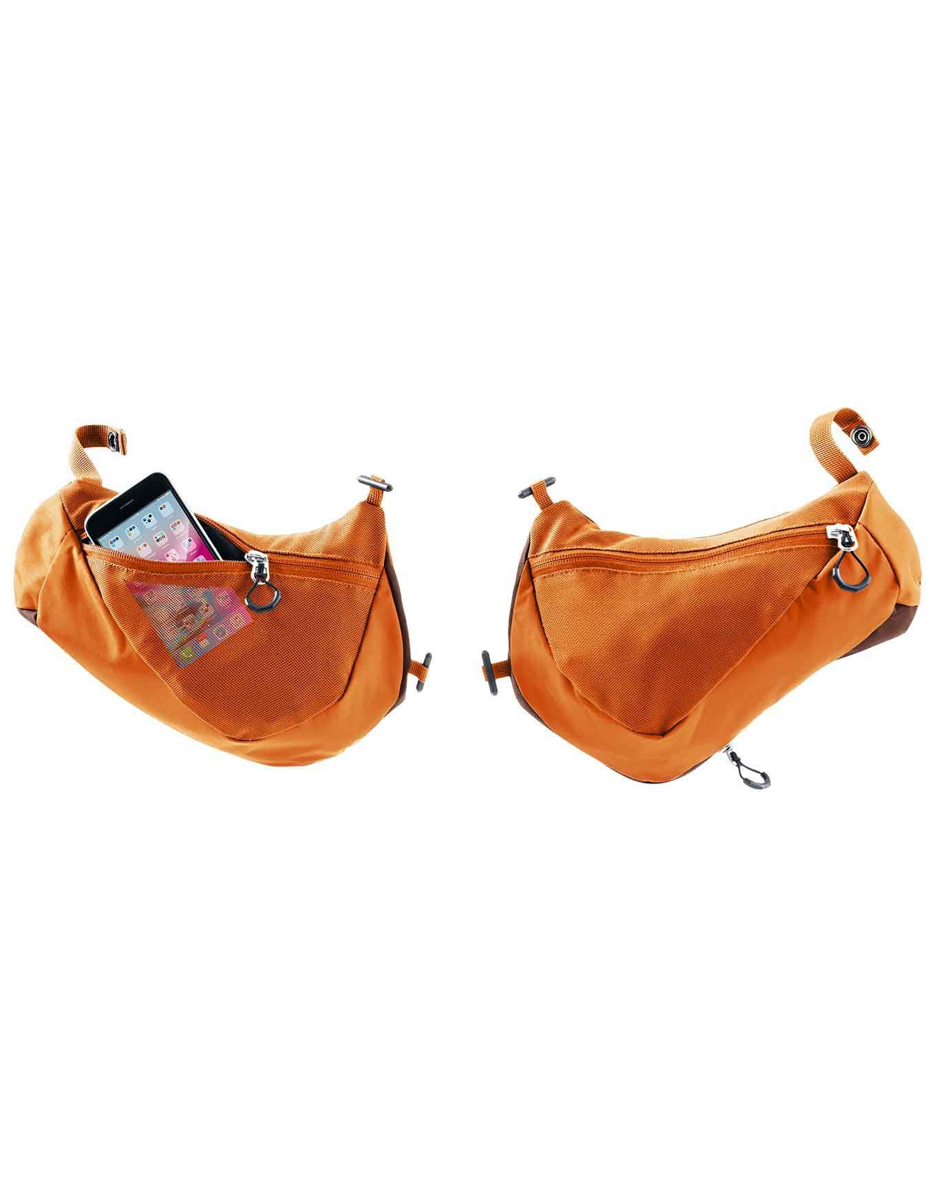Les stabilisateurs de hanches intègrent deux vastes compartiments zippés qui se révèlent amovibles et procurent une capacité de stockage conséquente accessible immédiatement. Une bouteille d’eau de 1,5 L dans une poche supplémentaire pliable.