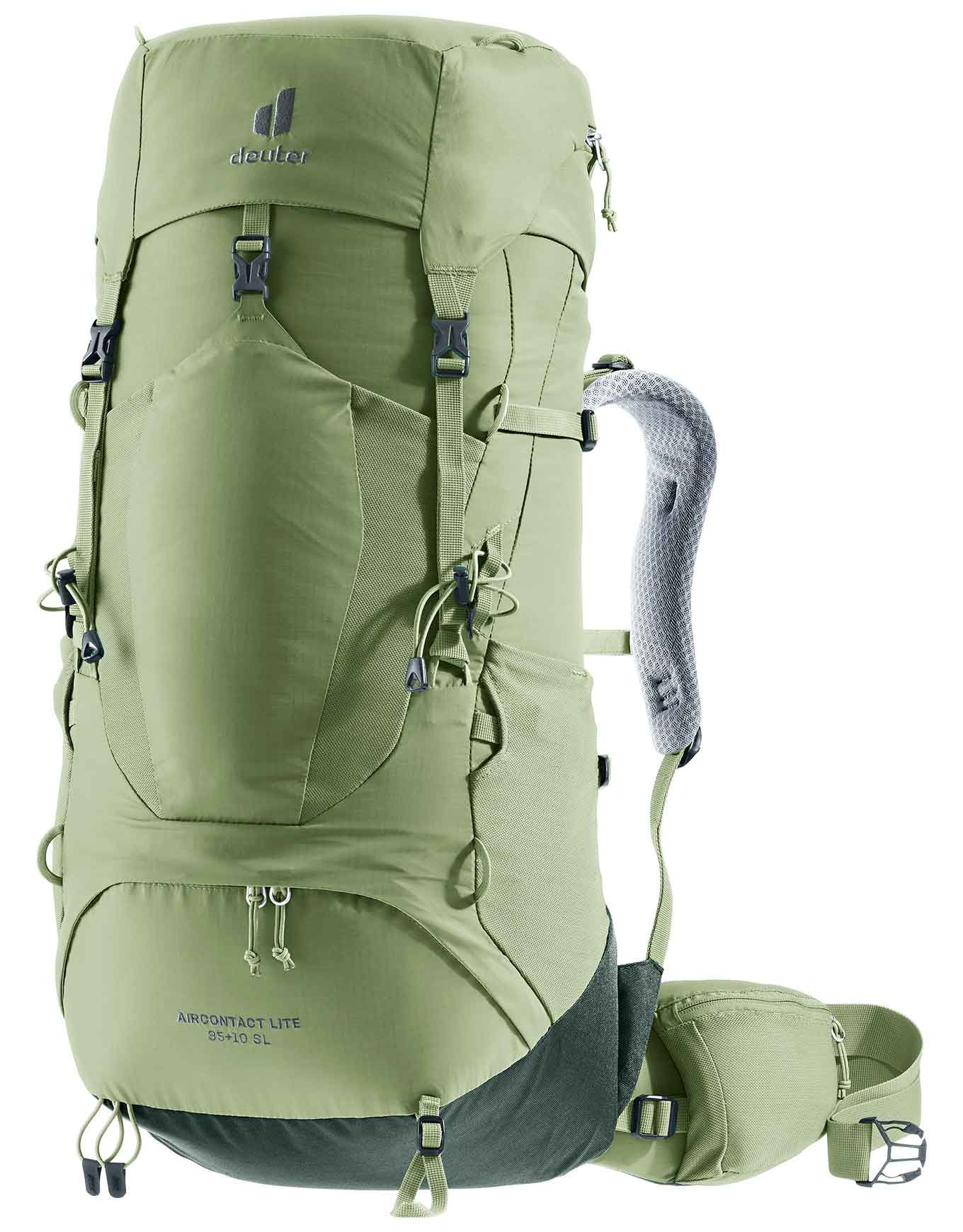 Sac à dos de trekking femme Deuter Aircontact Lite 35+10 SL Grove Ivy, dos court ergonomique en mousse Aircontact, réglage VariQuick, 45 L extensibles, compartiment humide, compatible poche à eau 3 L.