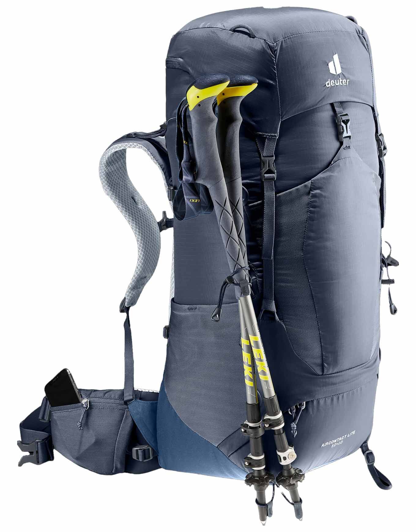 Deuter Aircontact Lite 50+10 SL Black Marine, sac à dos de trekking homme, allie légèreté et confort avec son dos ergonomique aéré, réglage VariQuick, compartiment séparé et compatibilité poche à eau 3 L.