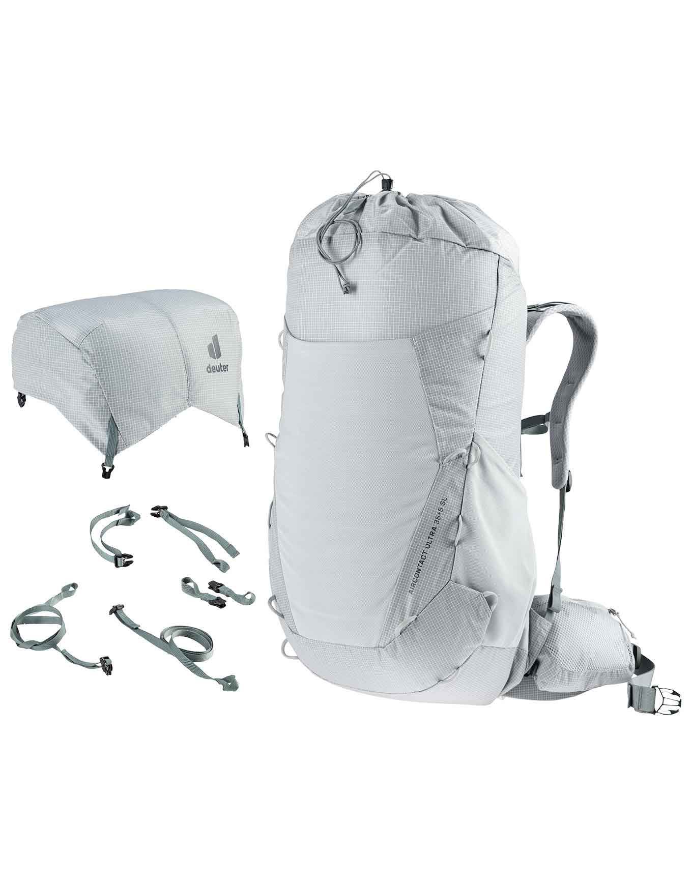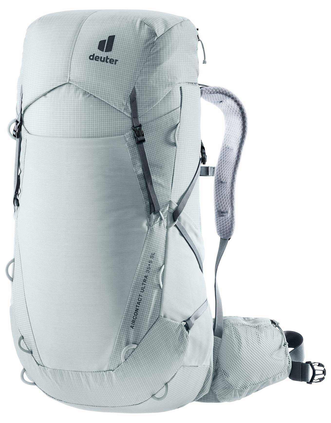 Sac à dos de trekking femme Deuter Aircontact Ultra 35+5 SL Tin Shale, ultra-léger et robuste, dos réglable Aircontact avec Air Spacer Mesh pour ventilation optimale, bretelles et ceinture adaptées à la morphologie féminine, compartiment humide extensible et compatibilité poche à eau 3 L.
