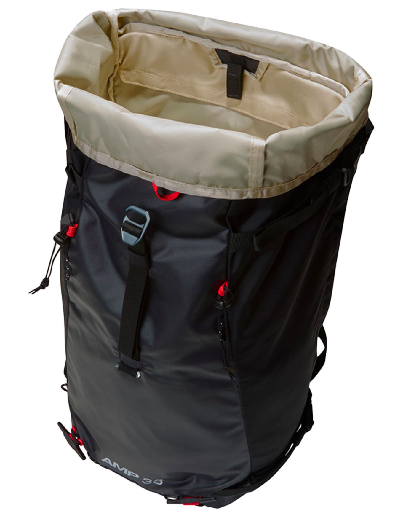L’extérieur intègre un dispositif de fixation ski, un porte-casque détachable, un système de portage pour la corde ainsi que des attaches destinées aux outils, piolets ou bâtons. Aussi performant pour l’ascension d’un pic que pour des sessions backcountry ou freeride, il s’avère d’une grande polyvalence.