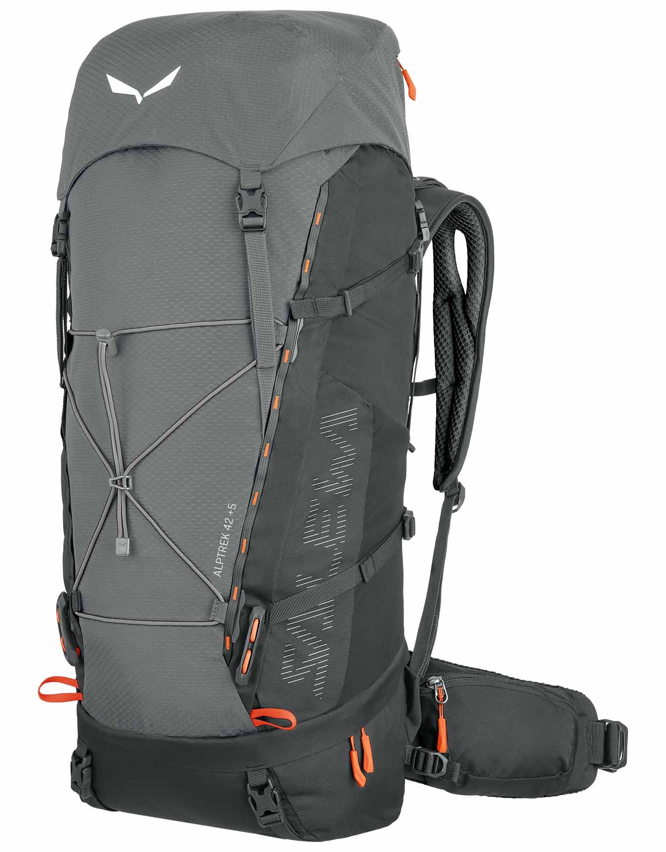 Sac à dos Salewa Alptrek 42+5L, conçu pour le trekking longue distance sur plusieurs jours, offre un volume extensible, un excellent aération et un accès double pour un confort optimal.