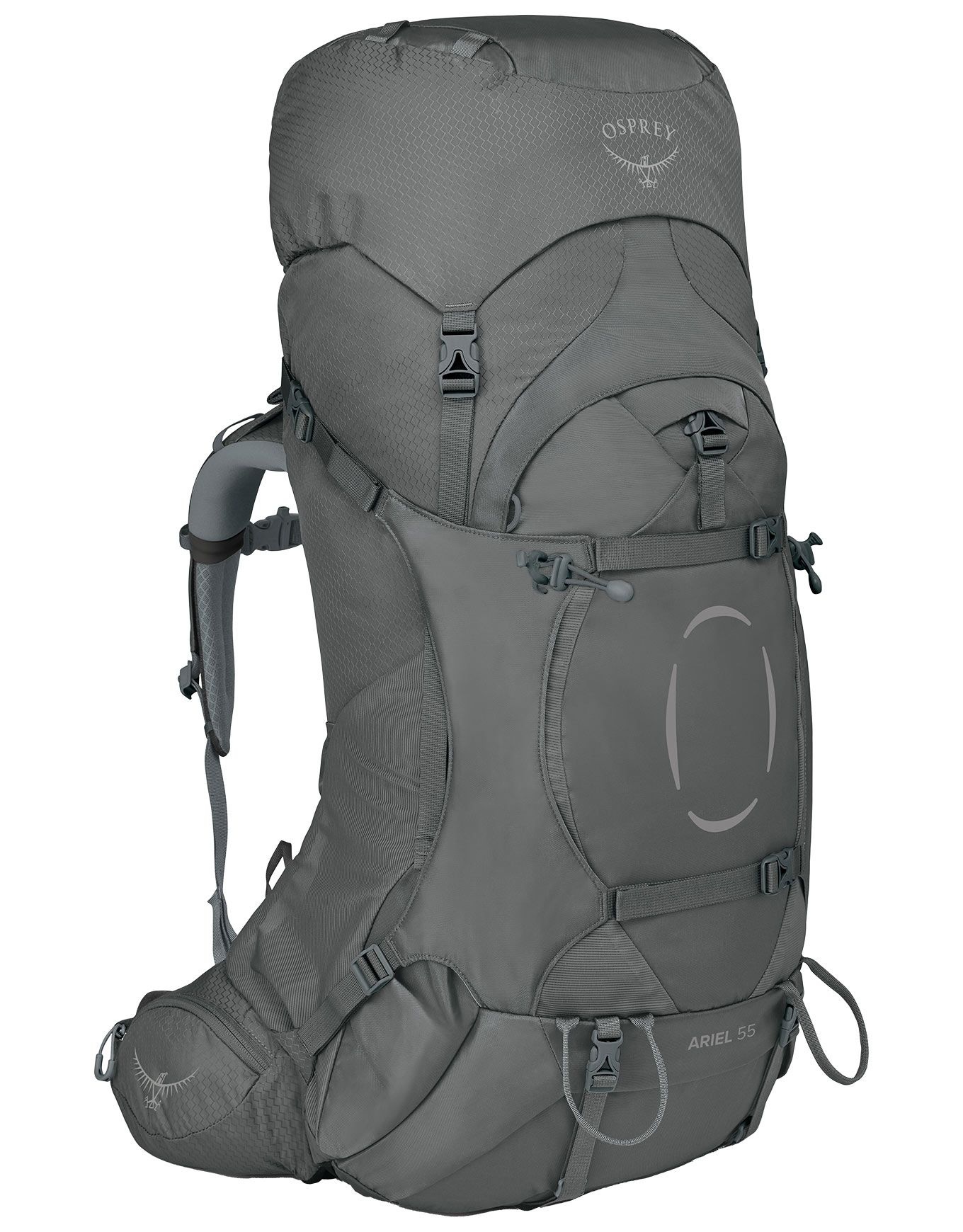 Le sac à dos de trekking Osprey Ariel 55 Medium Grey, conçu pour femme, allie stabilité irréprochable et ajustement personnalisé grâce à sa ceinture et bretelles Fit-on-the-Fly, sa suspension dorsale AirScape respirante et sa conception résistante.