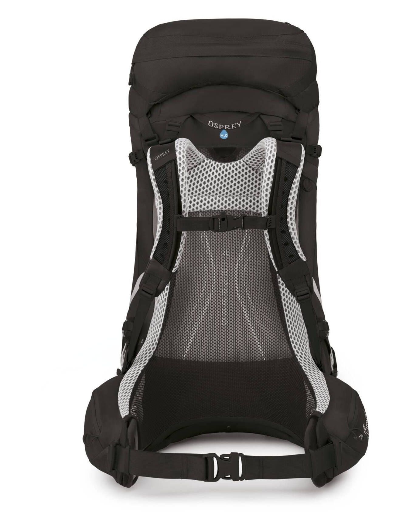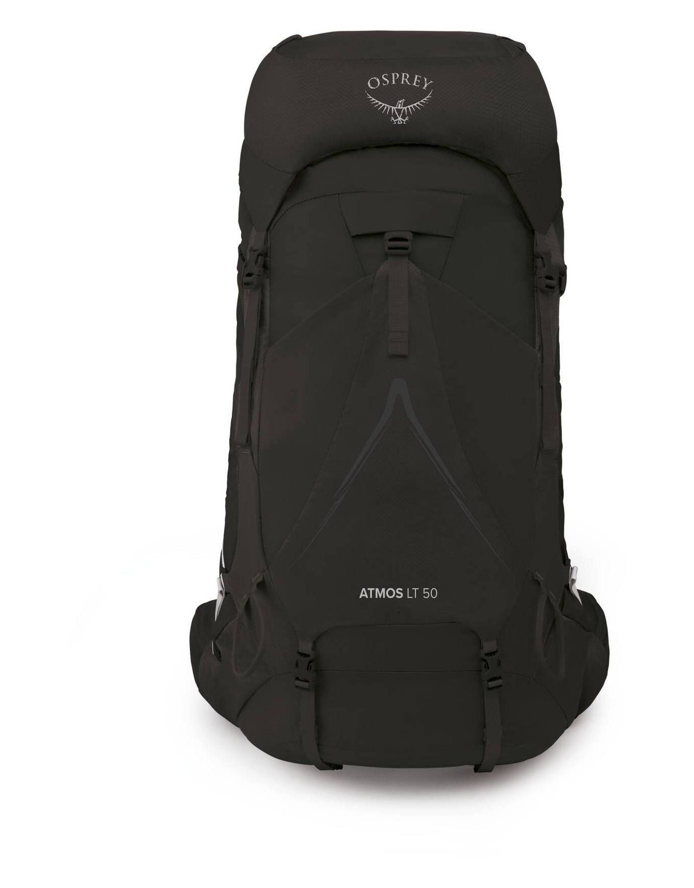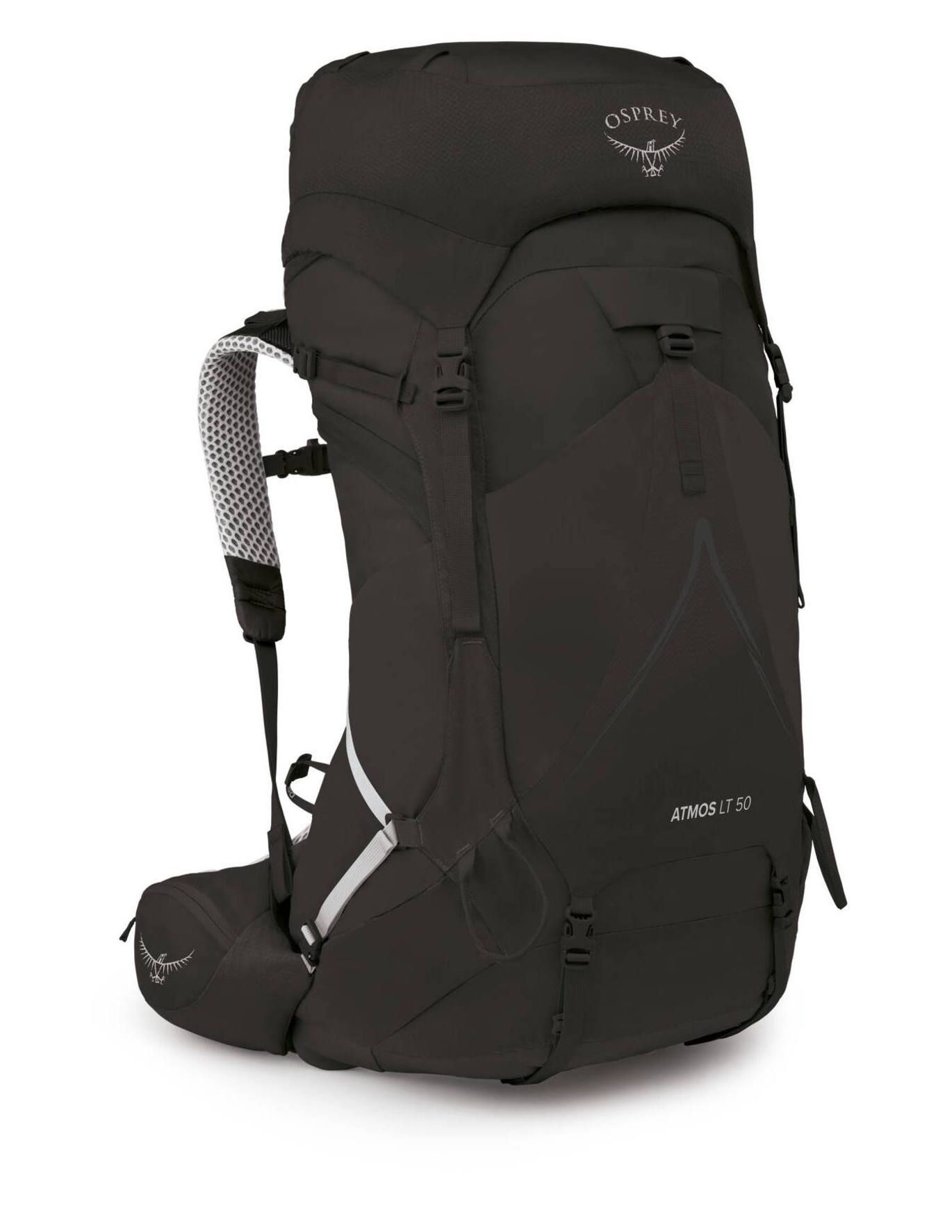 Sac à dos de trekking Osprey Atmos AG LT 50 Black, 50 L, 10 % plus léger, système AntiGravity ventilé, ceinture Fit-on-the-Fly, poches eau, housse pluie intégrée, matière 100 % recyclée.
