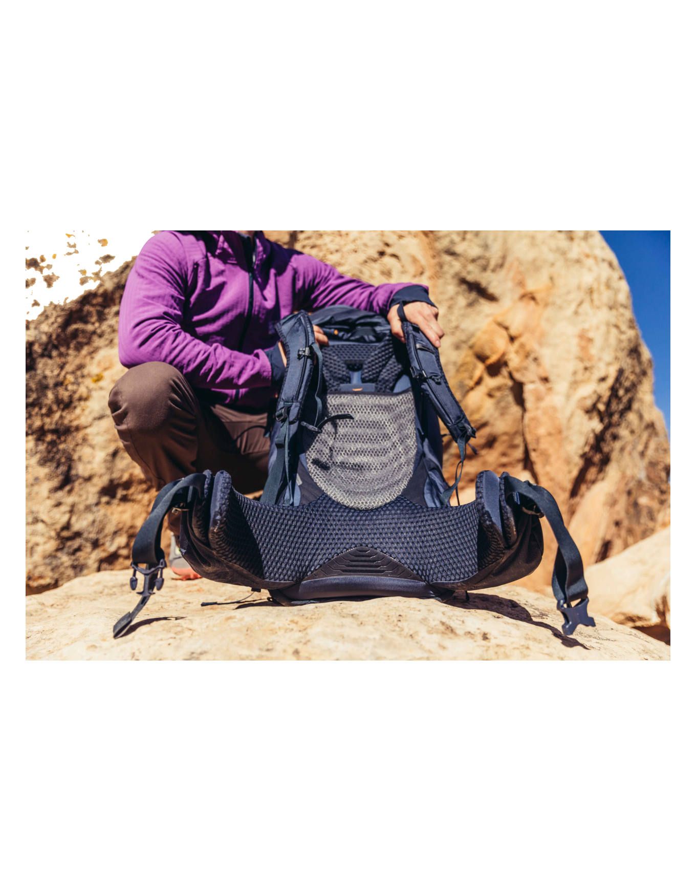 L’ajustement précis à votre morphologie est rendu possible grâce à la Technologie FreeFloat A3 (Auto Angle Adjust). Pour le confort dorsal, un panneau aéré sans mousse assure une ventilation optimale. Bretelles et ceinture sont conçues sans zone de frottement, offrant une tenue enveloppante. Les bretelles pivotantes intègrent une double densité, une sternale, un sifflet d’urgence ainsi que des passages pour système d’hydratation. Le traitement Polygiene® inhibe la prolifération microbienne, assurant hygiène et bien-être.