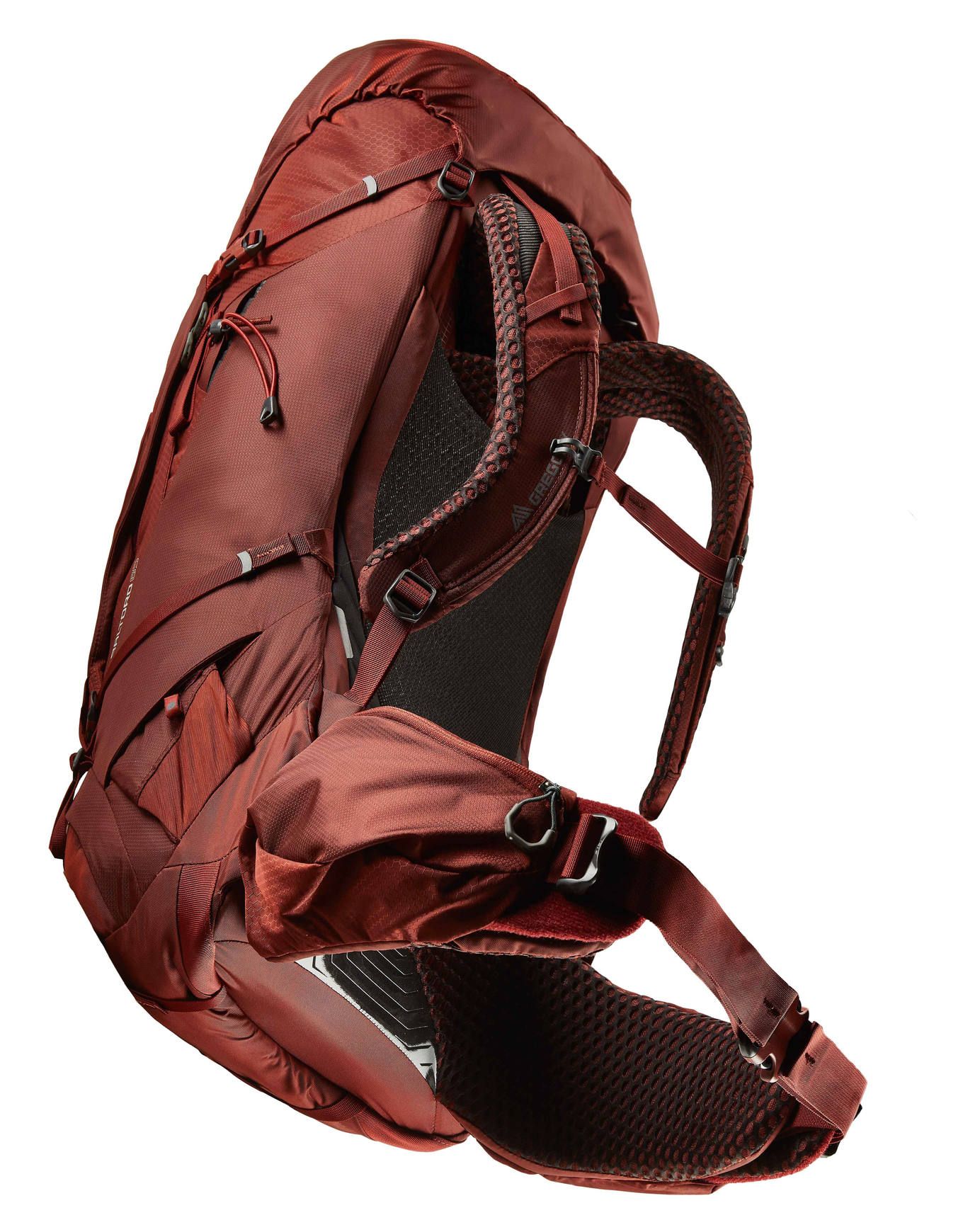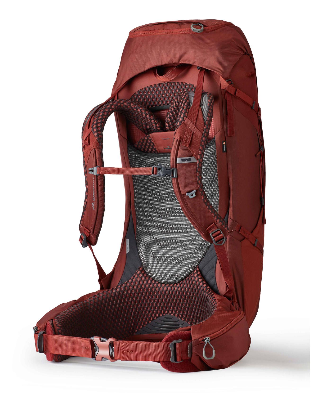 Sac à dos Gregory Baltoro 65 RC Brick Red, 65 L pour randonnées itinérantes masculines, avec suspension FreeFloat A3 ajustable, dorsal aéré, bretelles autopivotantes, traitement Polygiene® et rangements multiples.