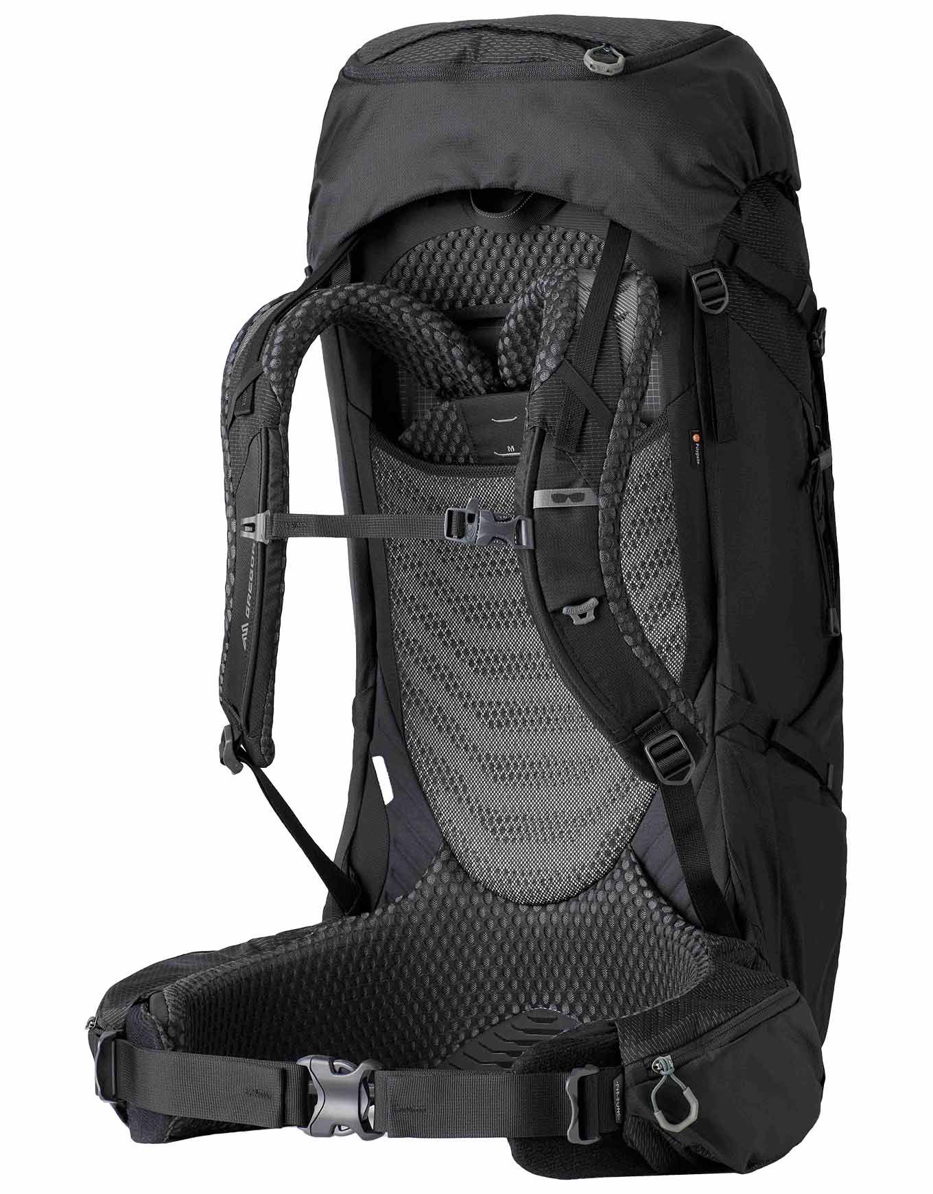 Pour les randonnées itinérantes de plusieurs jours, le Baltoro 75 Rc Obsidian Black de Gregory constitue le sac à dos masculin parfaitement adapté. La marque Gregory accorde une importance particulière à l’ajustement dorsal afin de garantir un confort soutenu sur la durée, même lors de marches prolongées avec une charge importante. Un volume de 75 litres offre une capacité généreuse accompagnée de multiples compartiments permettant d’emporter l’équipement nécessaire à une escapade de plusieurs jours. Grâce à la Technologie FreeFloat A3 (Auto Angle Adjust), un réglage fin et personnalisé selon la morphologie de l’utilisateur devient possible. Sur le plan du confort, le panneau dorsal intègre un coussin à air dépourvu de mousse favorisant la ventilation. Bretelles et ceinture sont conçues sans zone de friction pour une tenue enveloppante optimale. Les bretelles pivotantes automatiquement présentent une double densité, sont munies d’une sangle sternale, d’un sifflet d’urgence ainsi que de points d’attache pour système d’hydratation. Le traitement Polygiene® inhibe la prolifération des micro-organismes, assurant ainsi meilleure hygiène et agrément.
