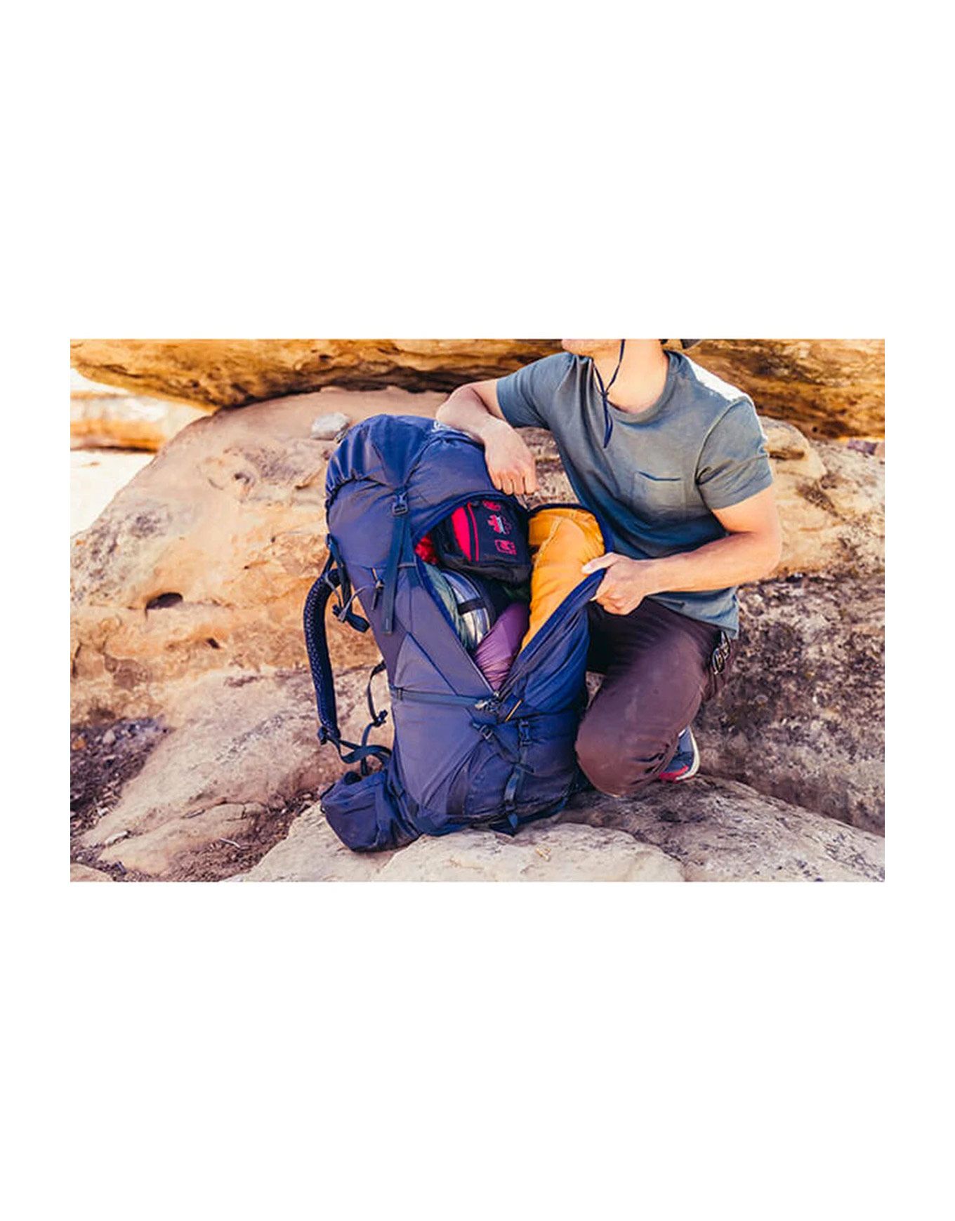 L’équipement de ce modèle se révèle particulièrement complet. Le système QuickStow facilite l’accrochage des lunettes de soleil directement sur les bretelles. Le porte-bidon latéral « SideWinder » s’utilise d’une seule main. Un compartiment dédié au sac de couchage, pourvu d’un séparateur amovible, est intégré. Une boucle d’attache ajustable pour bâtons ou piolet complète l’ensemble. Par ailleurs, une housse de protection contre la pluie se loge dans une poche zippée afin de préserver l’étanchéité du sac durant l’ensemble des déplacements.