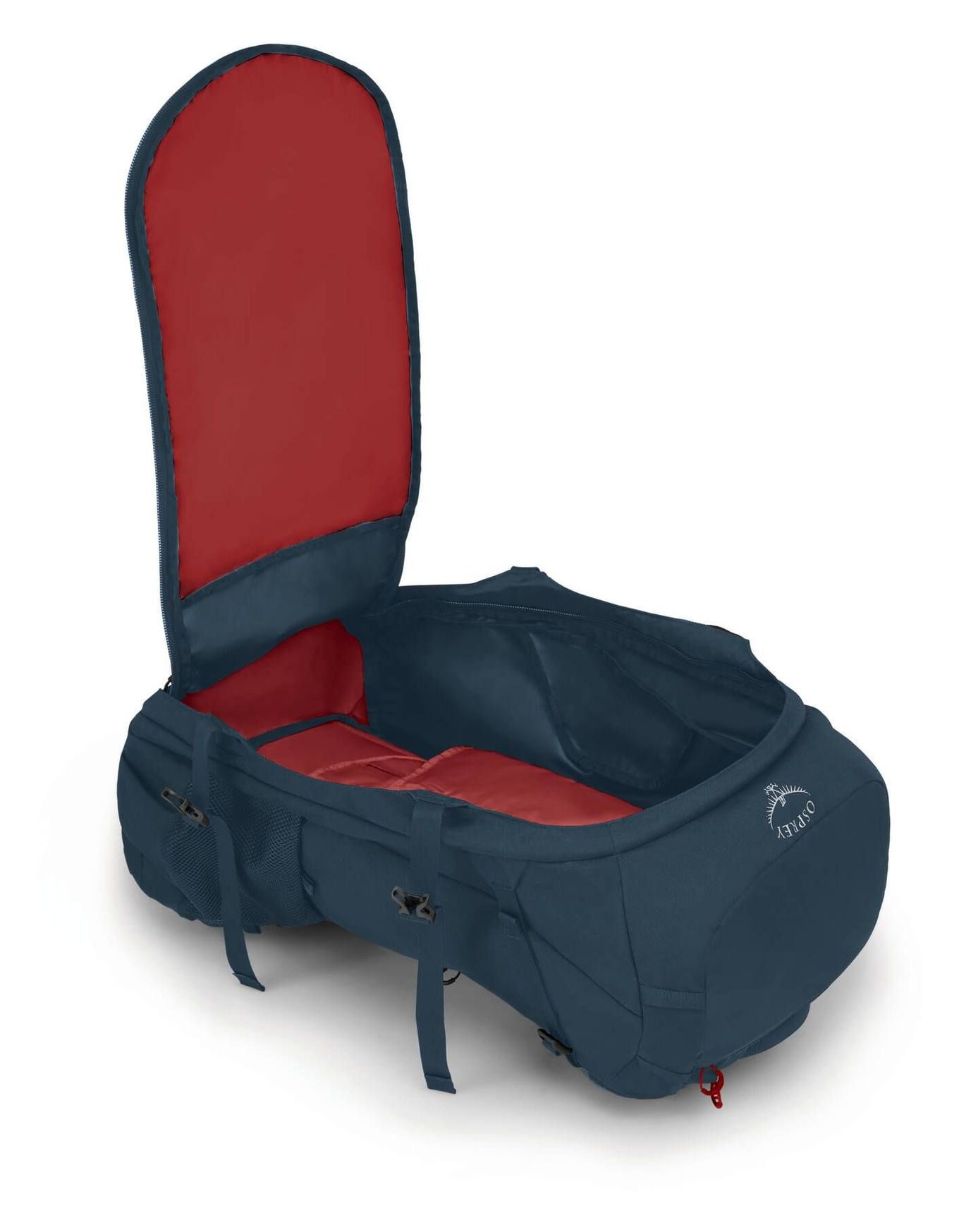 Un RainCover est incorporé pour protéger l’intérieur des intempéries et augmenter la résistance générale du sac, assurant une longévité accrue. L’organisation des 55 L disponibles est pensée de manière fonctionnelle : des poches filets latérales à double ouverture accueillent barres, gourdes ou petit équipement, tandis que des sangles de compression intérieures immobilisent la charge sans générer d’espace inutilisé.