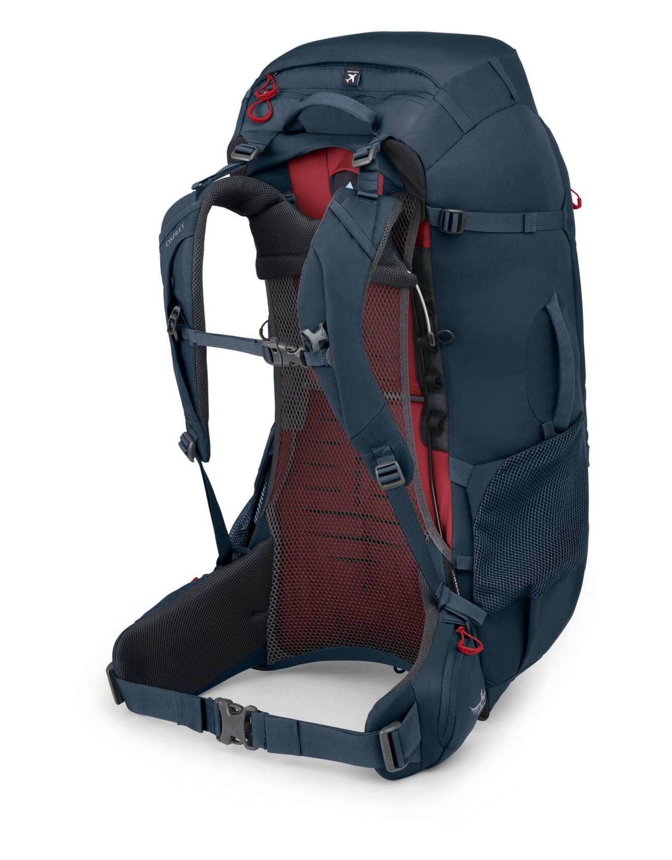 Sac de randonnée Osprey Farpoint Trek 55 55 L Muted Space Blue, dossier AirSpeed ventilé, housse de pluie intégrée,兼容Daylite, poche réservoir, ceinture réglable.