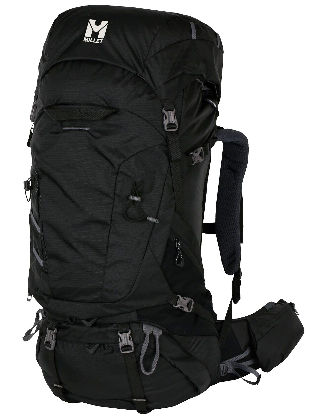 Le sac à dos de trekking Millet Hanang 65+10 Black, extensible de 10 L, allie ajustement précis par dos réglable, ceinture portage et bretelles ergonomiques, rangements multiples type valise, rabat étanche amovible, porte-bâtons Speed Poles™ et pare-pluie intégré pour treks longue durée en toutes saisons.