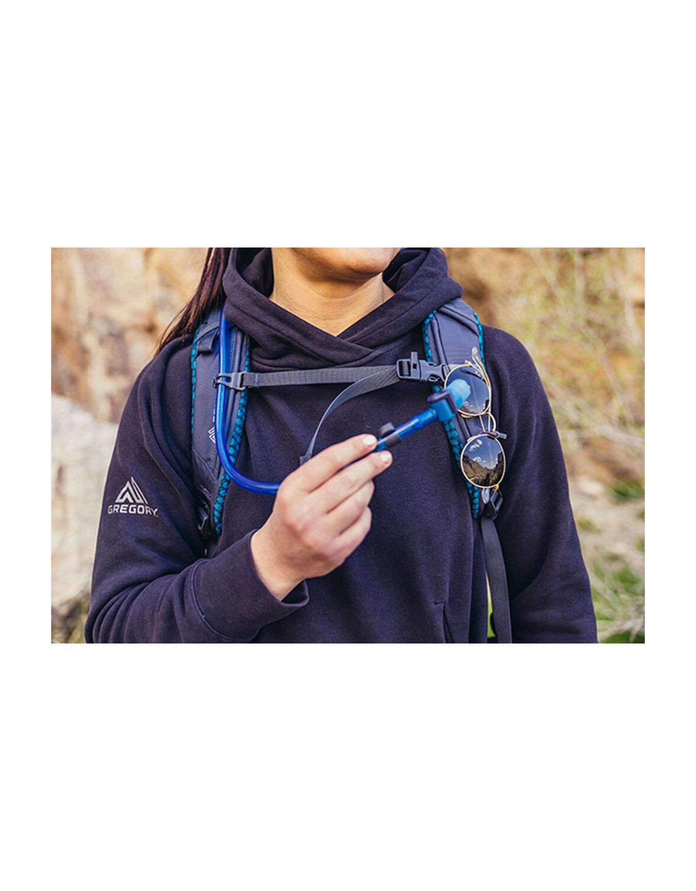 - Système QuickStow sur bretelle pour ranger rapidement et en sécurité vos lunettes de soleil Housse pour poche à eau intégrée avec clip « Speed Clip », compatible avec la poche 3D Hydro de Gregory (non incluse).