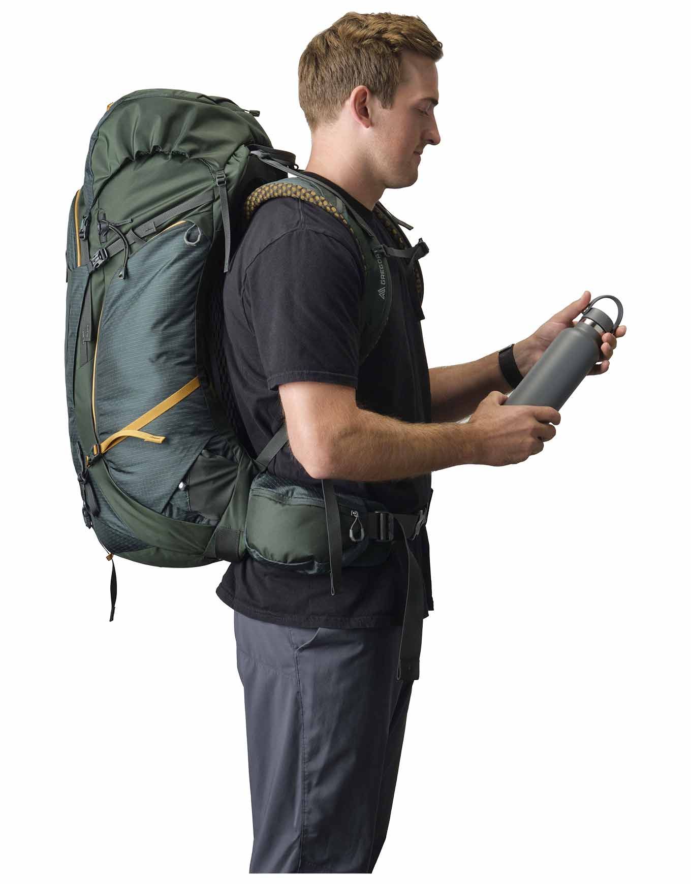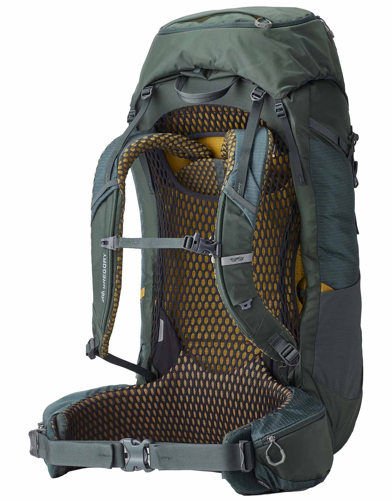 Sac à dos de trekking Gregory Katmai 65 Rc Oxide Green, 65 L, suspension Freefloat 360, bretelles autopivotantes, dos aéré Polygiene, accès latéral, compatibl