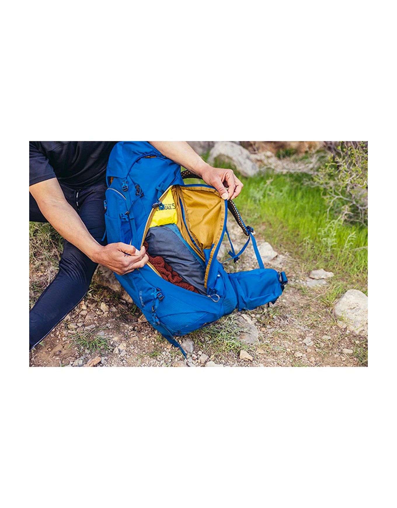 L’équipement 3D Hydro Reservoir trouve sa compatibilité avec ce modèle ultra-fonctionnel. La bandoulière intègre le système QuickStow pour suspendre les lunettes de soleil et les saisir instantanément. Une attache permet le port de bâtons ou de piolets. Le compartiment inférieur, destiné au sac de couchage, s’ouvre par fermeture éclair et se divise grâce à une cloison amovible.