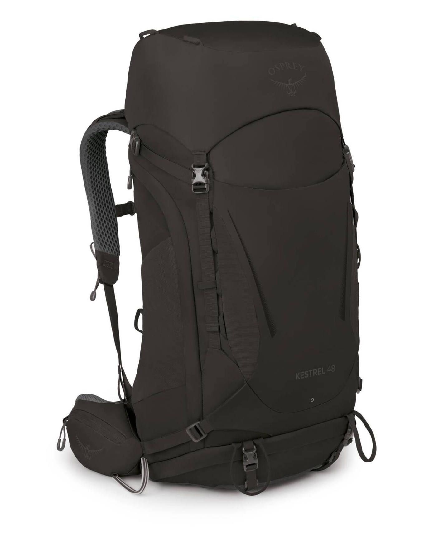 Sac à dos de randonnée Osprey Kestrel 48 Black, 48 L, réglable, dorsal AirScape, bretelles Airmesh, accès latéral, housse pluie intégrée.