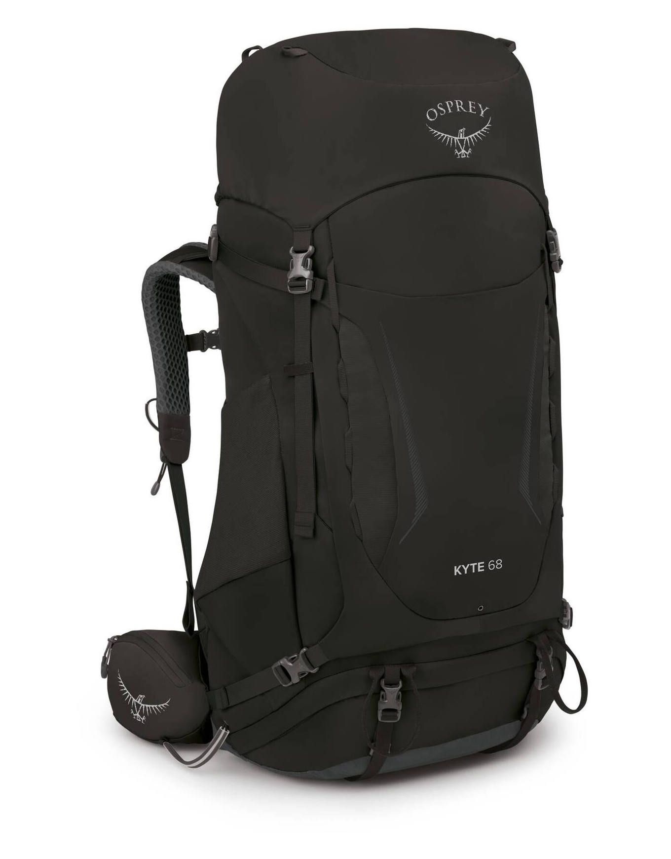 Sac à dos de trekking femme Osprey Kyte 68 Black, 68 L, dorsal AirScape réglable, bretelles Airmesh ventilées, accès latéral, housse pluie intégrée, compartiment sac de couchage amovible.