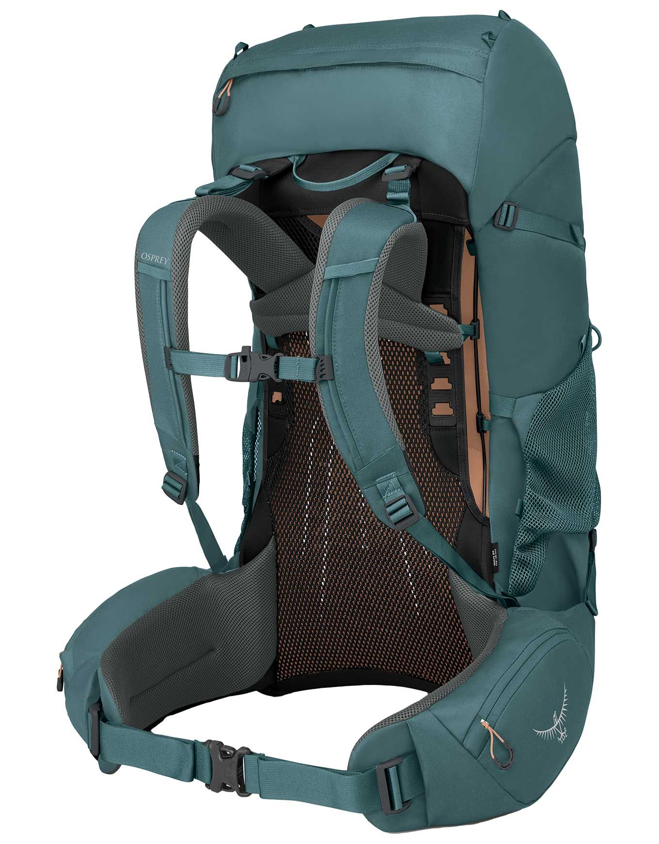Une grande cavité surmontée d’un dos en maille AirSpeed suspendu génère un espace aéré entre le porteur et le sac. Cette architecture améliore la ventilation tout en permettant au porte-bagage d’accompagner la colonne vertébrale pour plus de stabilité. Le réglage vertical sur rails couvre une large palette de morphologies avec une manipulation intuitive et rapide.