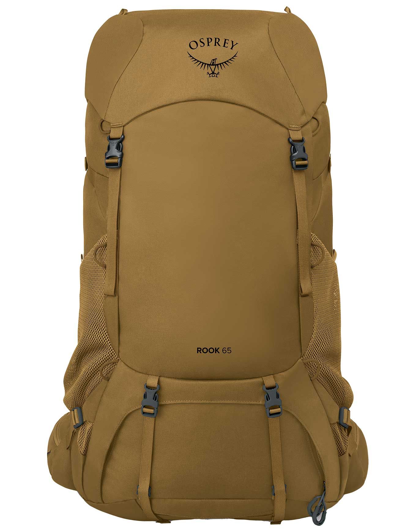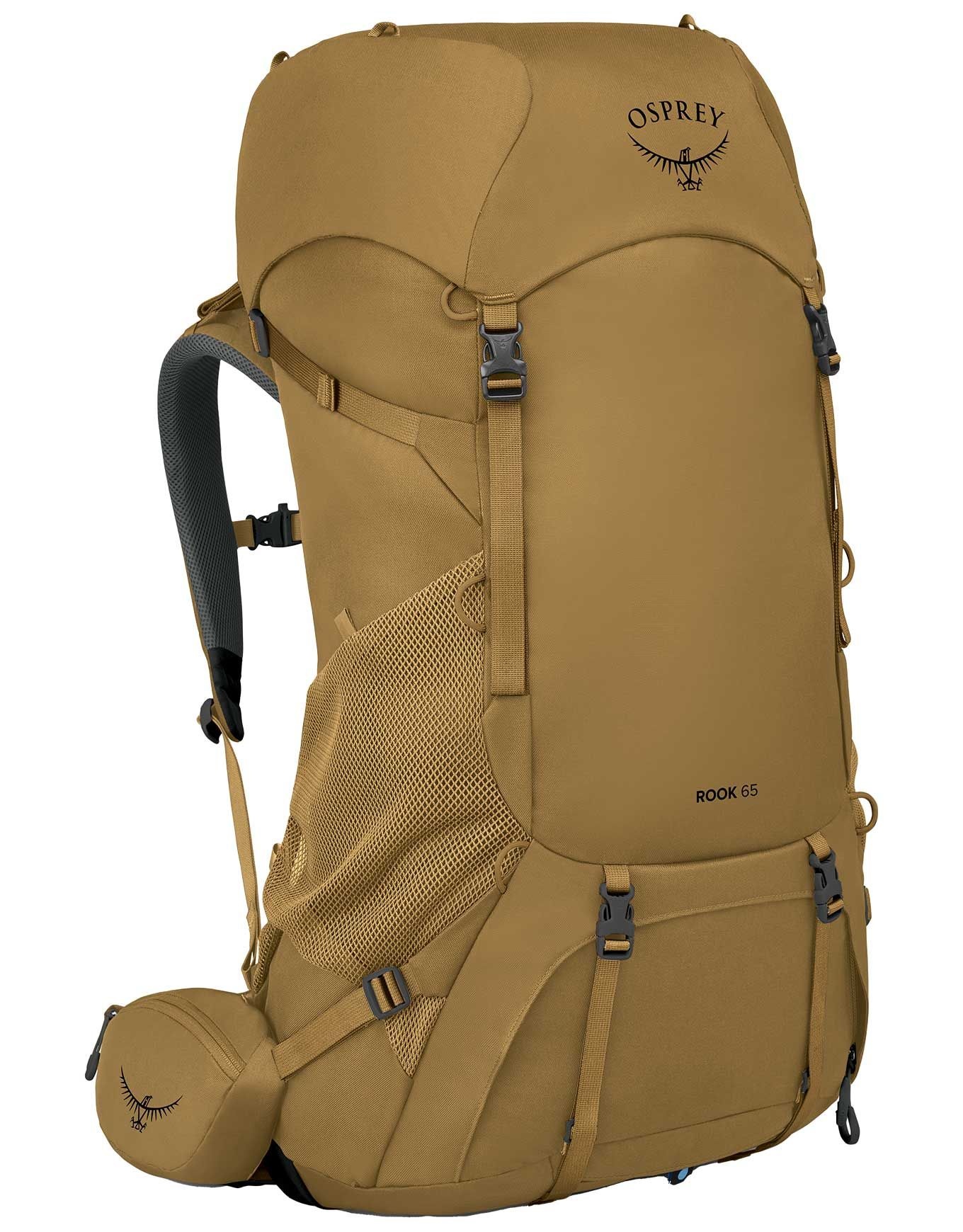 Sac à dos de trekking Osprey Rook 65 Histosol Brown/Rhino Grey, 65 L, dos AirSpeed ventilé réglable, ceinture rembourrée, compartiment sac de couchage, compatible Daylite pour randonnées autonomes.