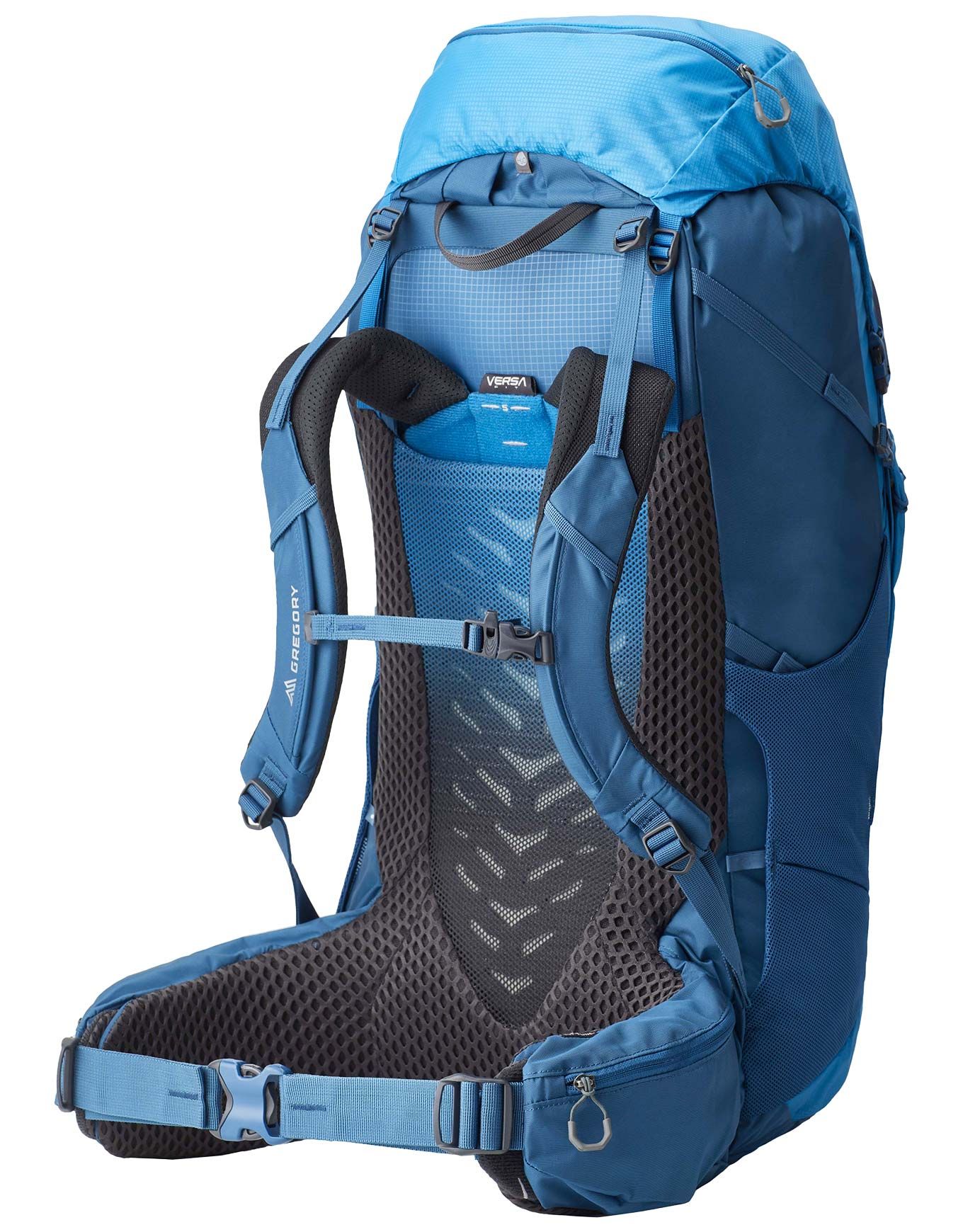 Sac à dos de randonnée Gregory Stout 55 Eu Compass Blue, 55 L, système de dos VersaFit réglable et ceinture rembourrée pour un confort sur mesure, housse de pluie intégrée, compartiment sac de couchage, poches latérales mesh et accès U principal.