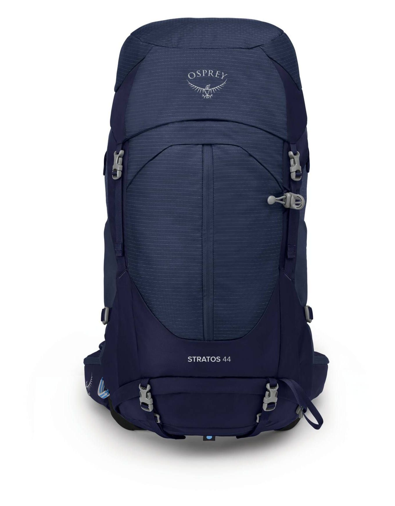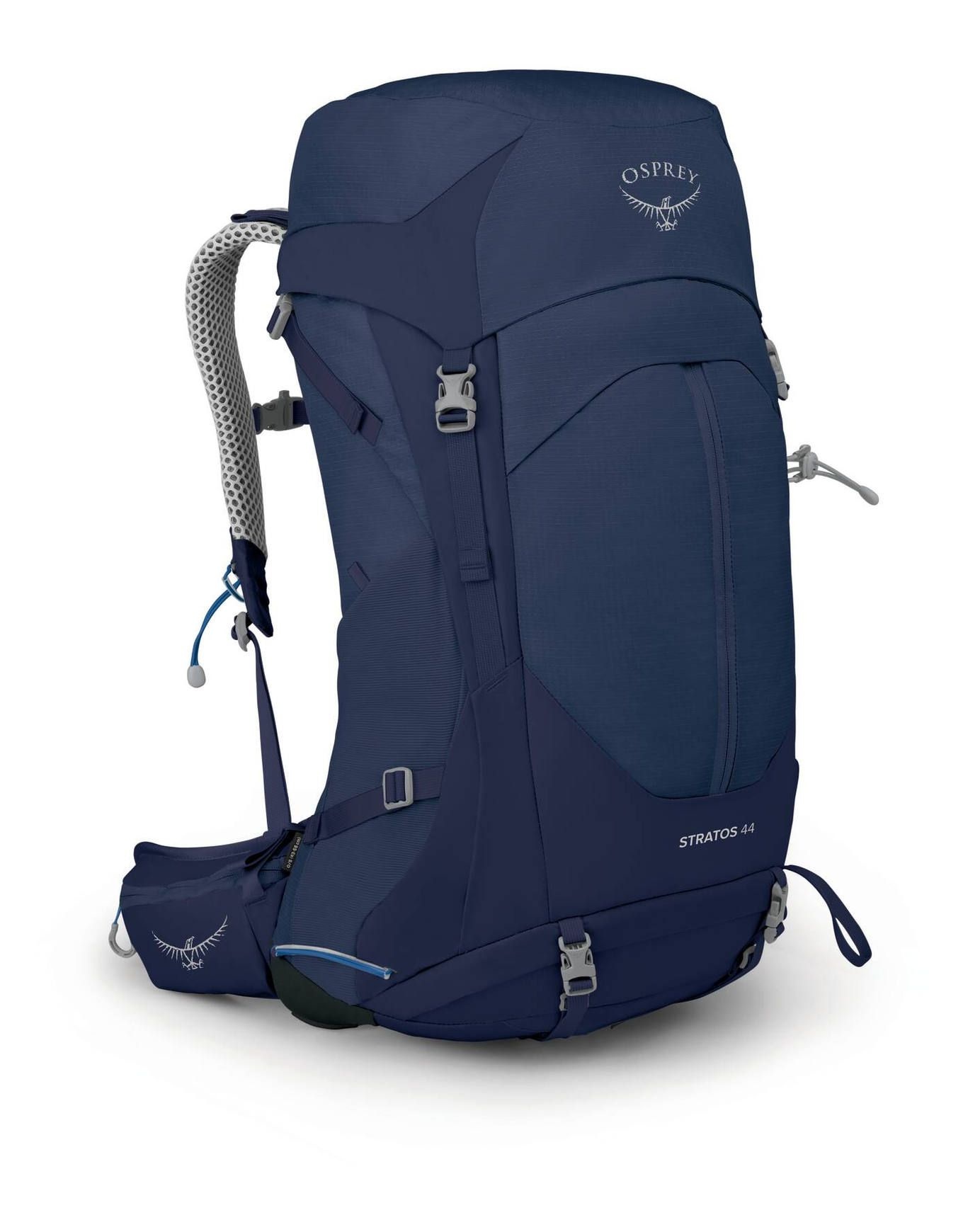 Sac à dos de trekking Osprey Stratos 44 Cetacean Blue pour homme, 44 L, dorsal AirSpeed™ ventilé, housse pluie intégrée,兼容 Hydraulics™ et attache bâtons Stow-on-the-Go™.