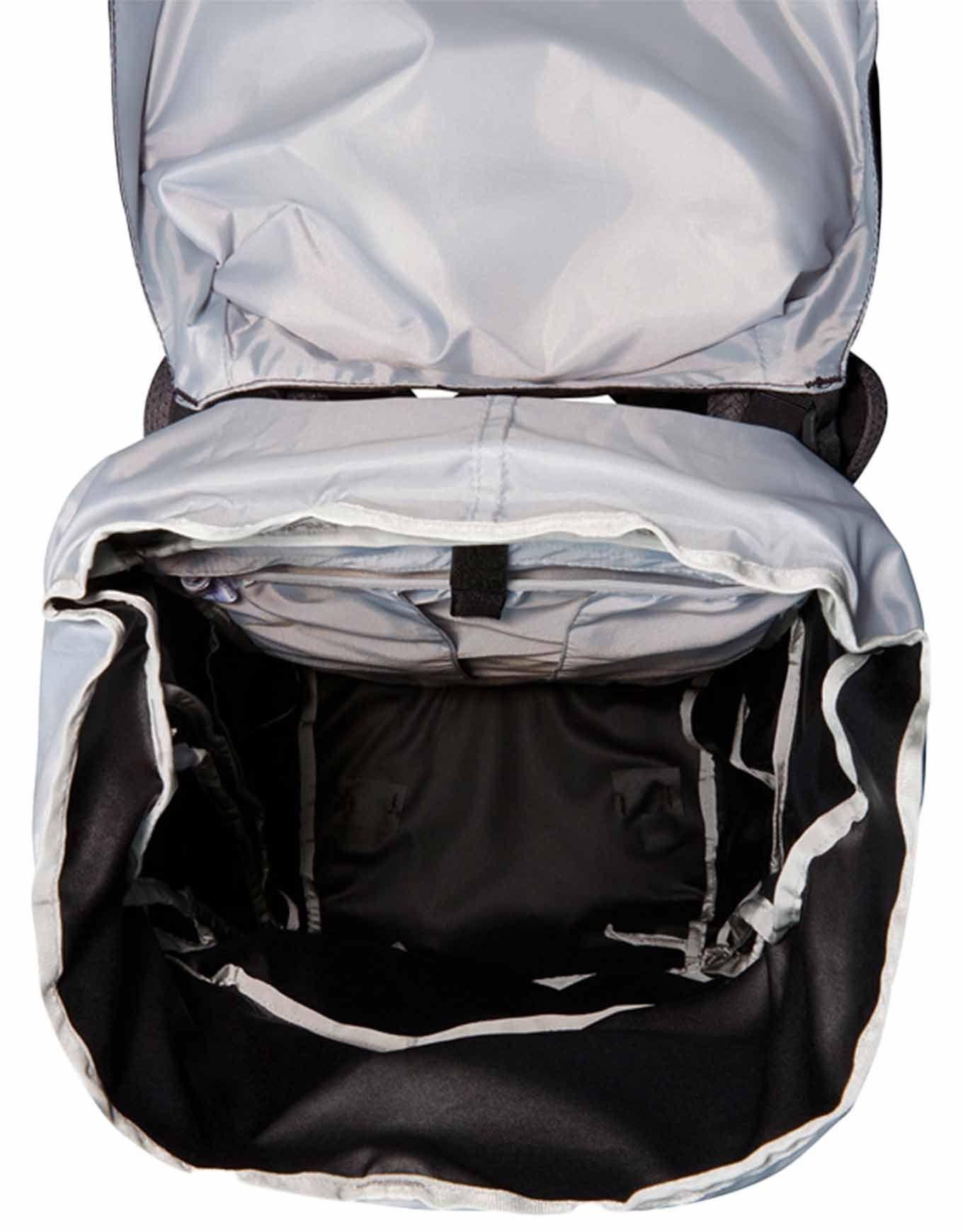 Une finition déperlante DWR protège le tissu contre l’humidité. La contenance de 55 litres permet d’embarquer l’ensemble du matériel requis. L’accès au contenu est facilité par une fermeture bidirectionnelle. Les multiples poches ainsi que les porte-bâtons se révèlent utiles sur le terrain.