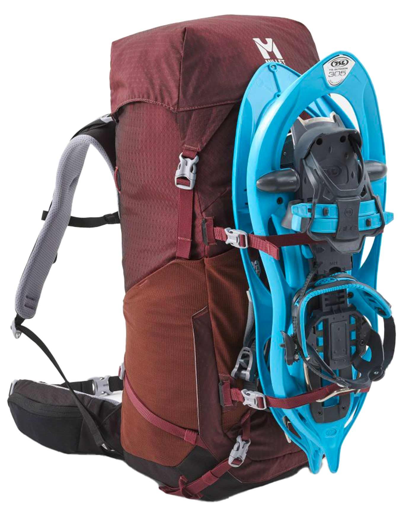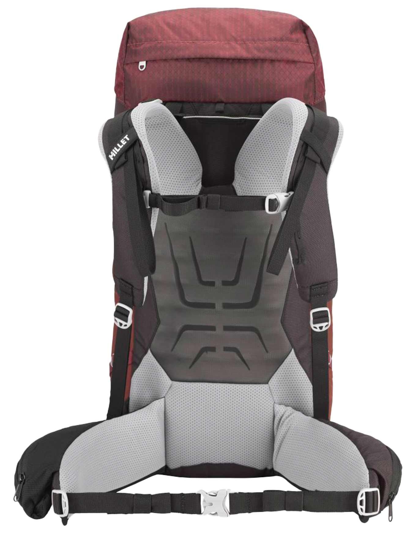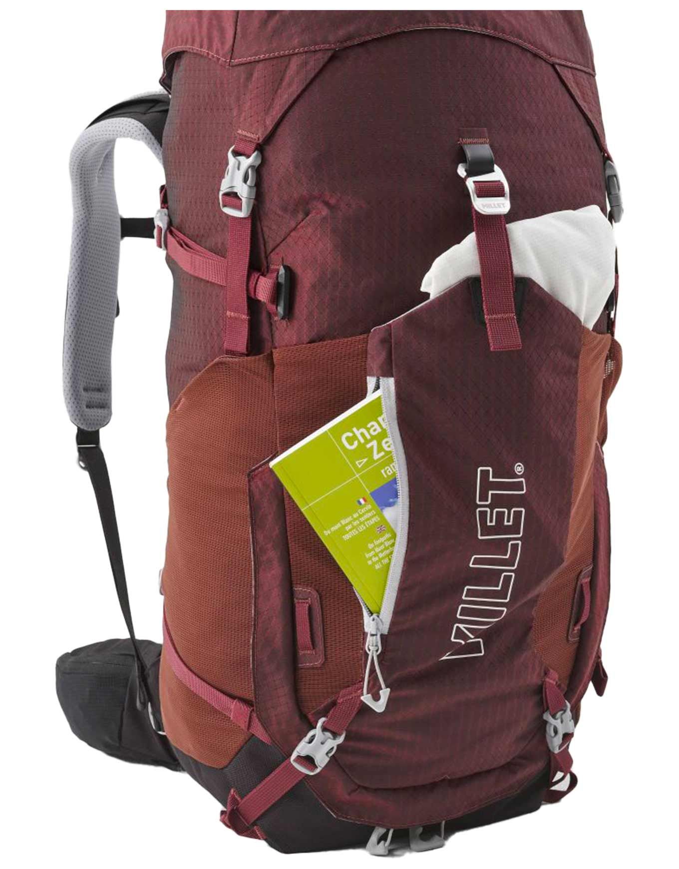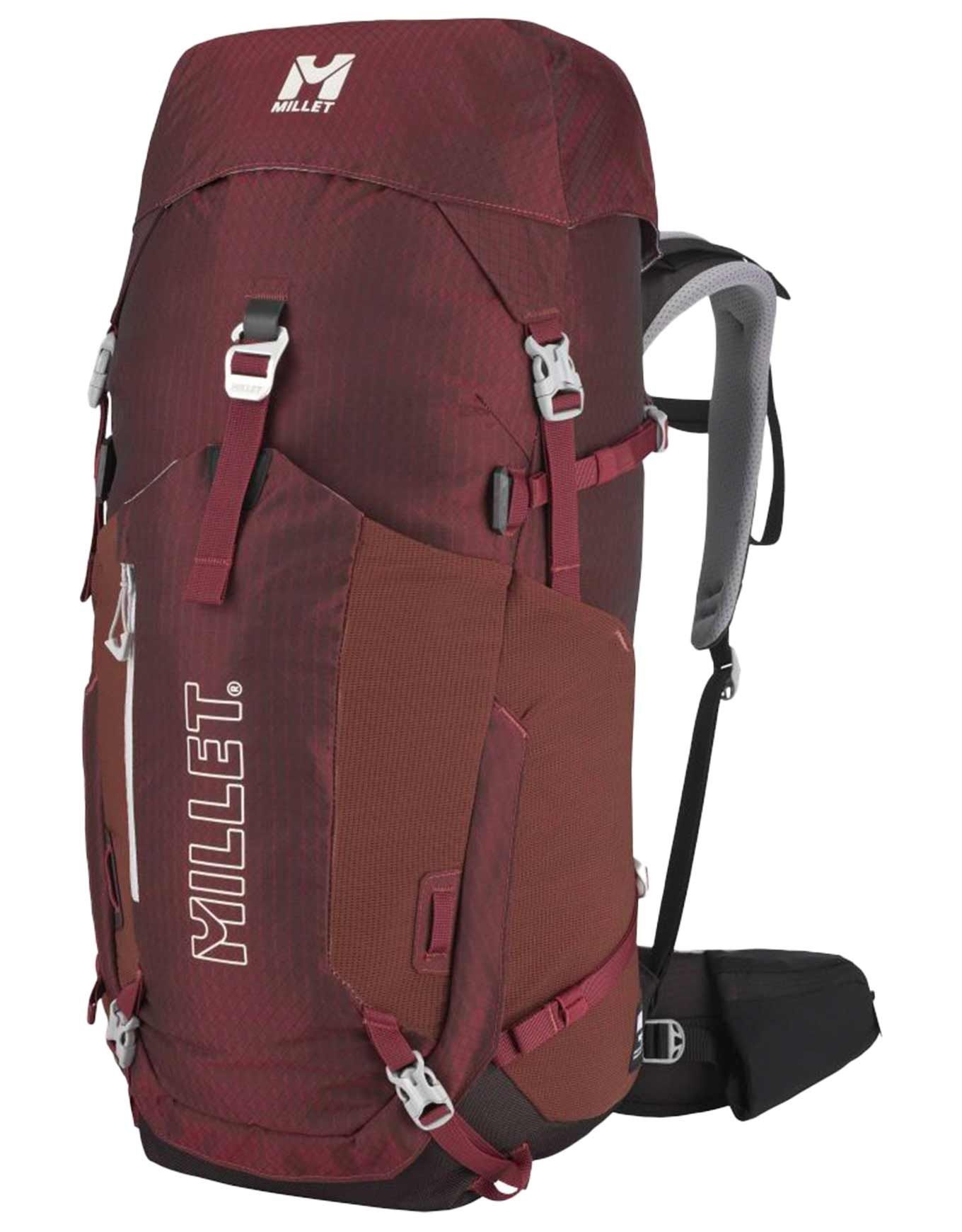 Millet Ubic 40 Dark Red est un sac à dos de trekking femme 4 saisons, léger et résistant, avec système Variloop™ pour skis ou raquettes, bretelles ergonomiques spécial femme, housse de pluie intégrée.