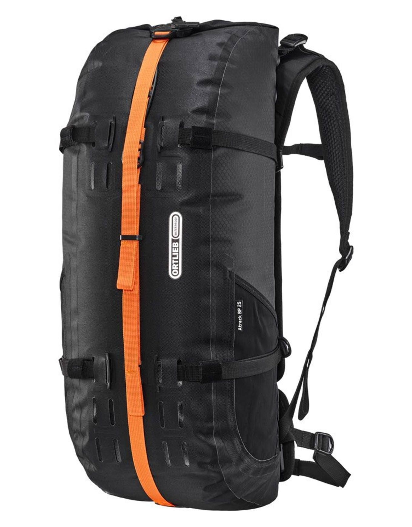 Sac à dos de bike packing Ortlieb Atrack Bike 25L totalement étanche à l’eau et à la poussière, offrant un accès complet par large ouverture zippée, dos réglable et ceinture amovible pour un confort adapté en selle.
