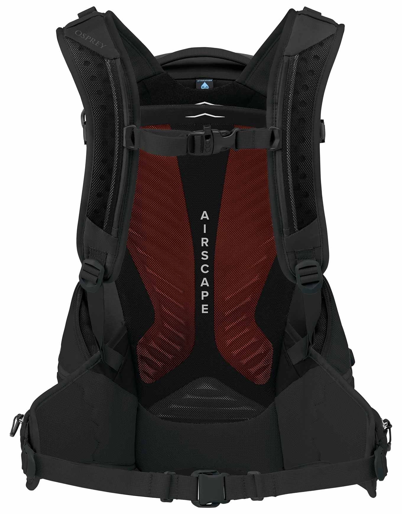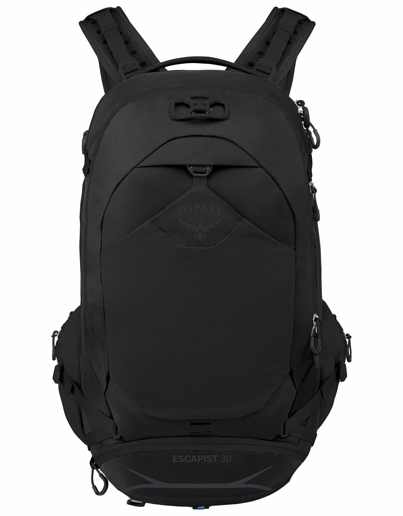 Sac à dos Osprey Escapist 30 Black, VTT et vélo urbain, 30 L dorsal AirScape™ ventilé, poche eau, housse pluie, fixations casque et sangles compression.