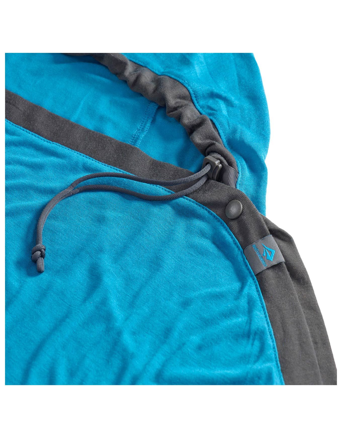 Drap de sac Sea To Summit Breeze Mummy w/ Drawcord Compact en Coolmax Poly Blend 70 % recyclé et Tencel 30 % pour réguler température et humidité, avec cordon de serrage réglable.