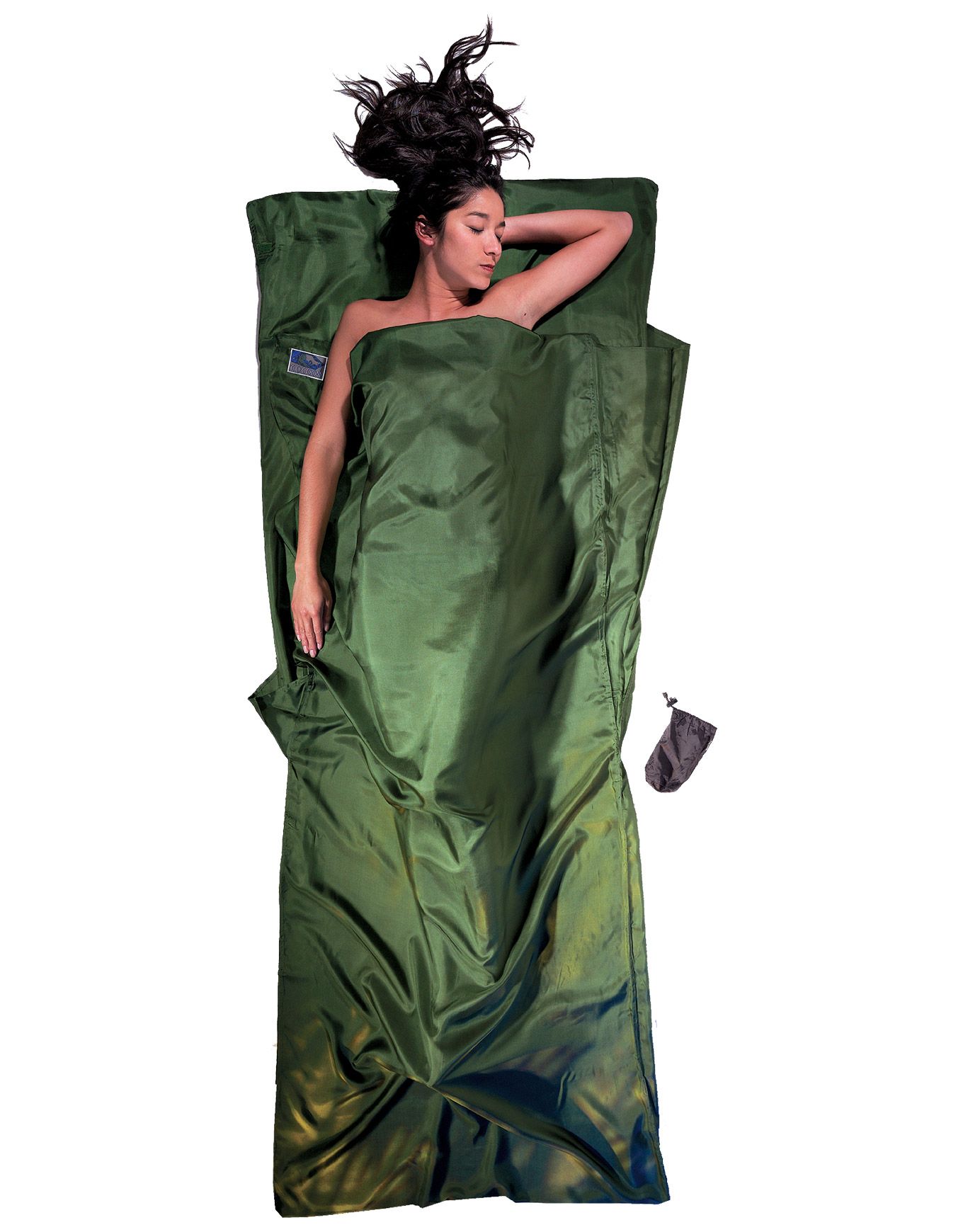 Drap de sac Cocoon Soie Rectangulaire Dark Olive Green, thermorégulant et compact, prolonge la durée de vie du sac de couchage tout en assurant douceur et légèreté en voyage.