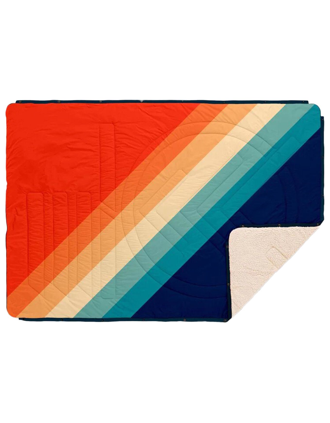 La couverture de camping Voited Cloudtouch Blanket Rainbow 4 en 1, en ripstop polyester recyclé REPREVE® avec traitement déperlant sans PFC, allie isolation 3D Featherlight et doublure Cloudtouch™ pour un confort optimal jusqu’à 8 °C.