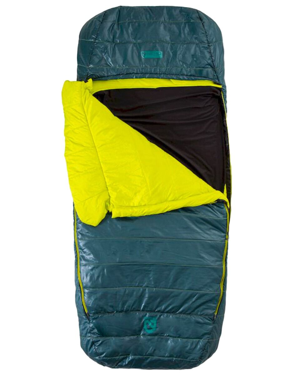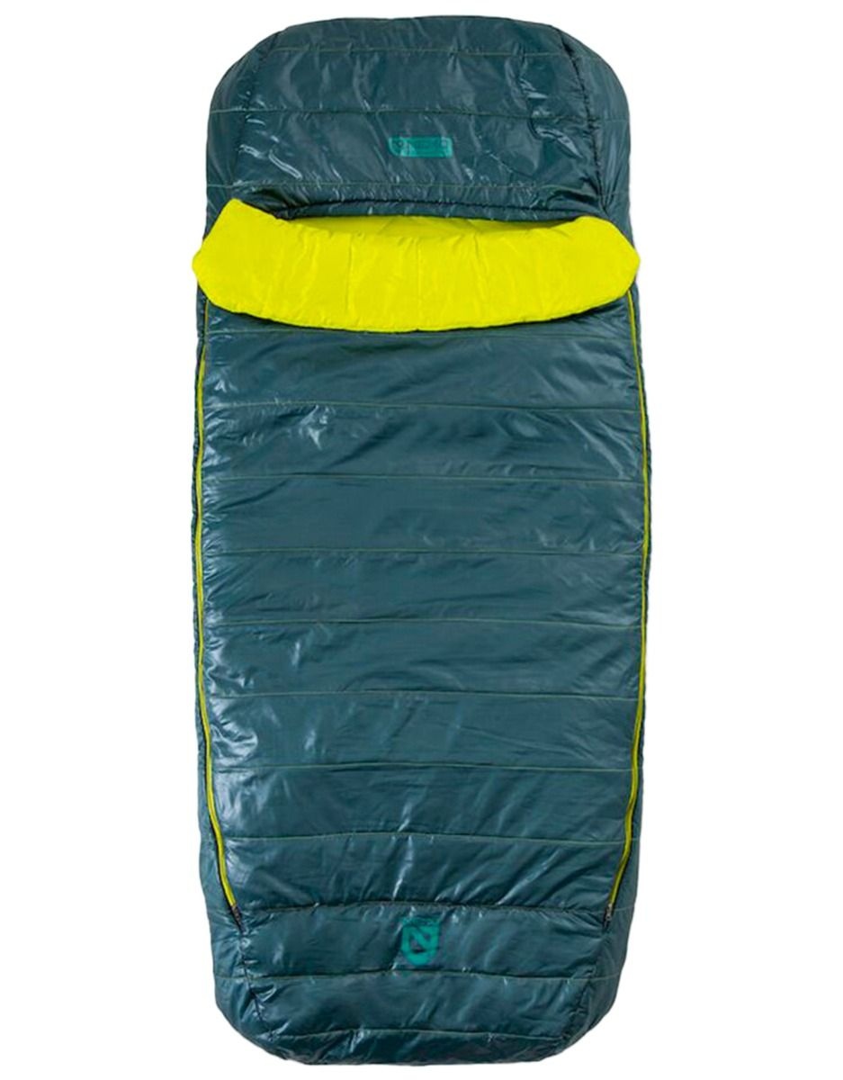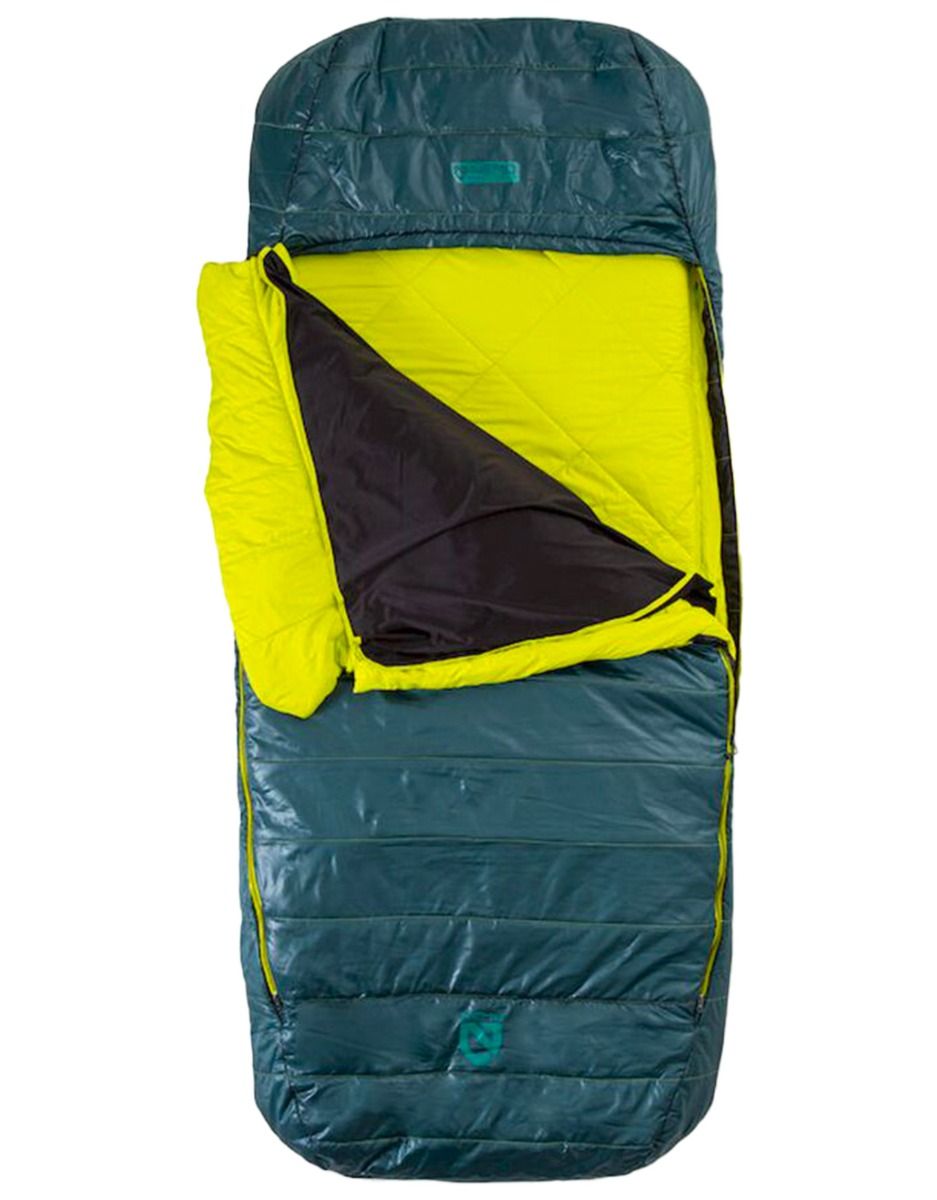 Sac de couchage Nemo Jazz Single spacieux, accueille directement votre matelas pour un confort optimal en camping. Température limite -7 °C, garnissage Stratofiber™ recyclé, rabat antifroid et zips bilatéraux pour jumelage.