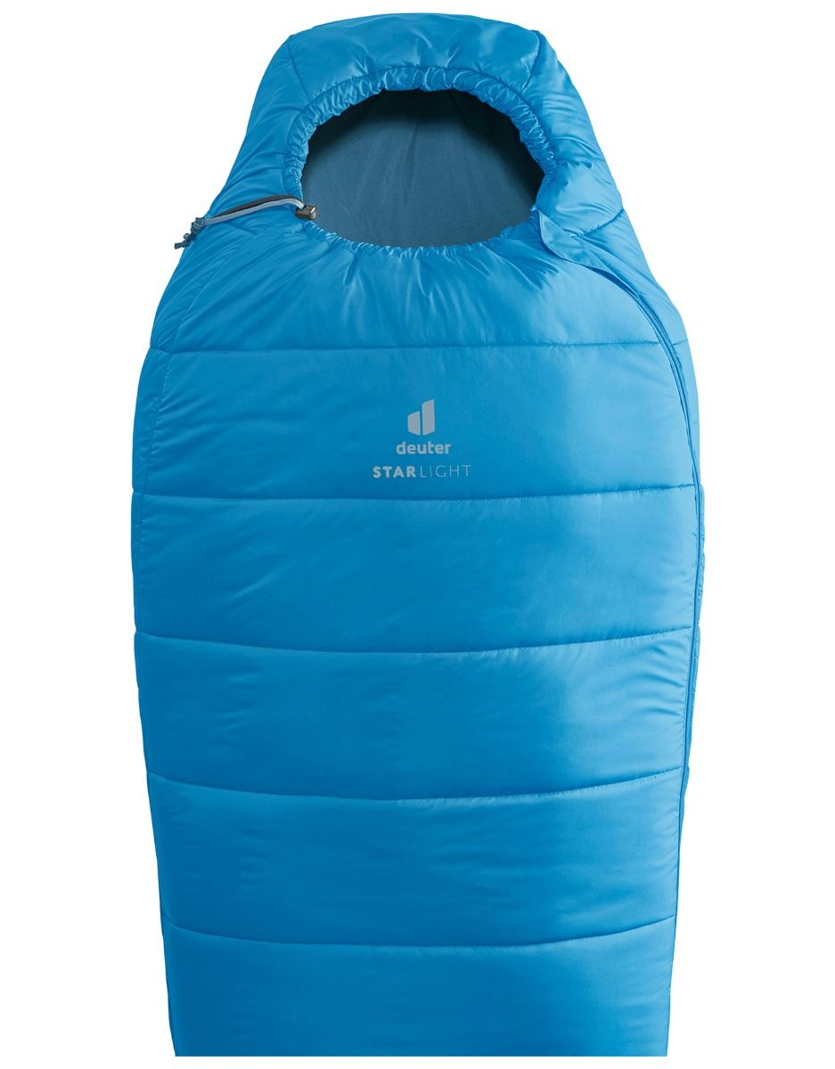 Sac de couchage enfant Deuter Starlight Reef Slateblue extensible 30 cm, printemps-été, capuche ErgoHood et doublure douce pour un confort optimal dès 1,30 m.