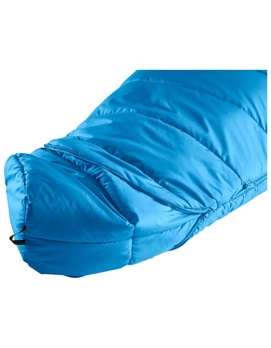 Conçu pour réchauffer les petits campeurs à partir de 1 m 30, le Starlight Reef Slateblue est un sac de couchage enfant. Une extension zippée de 30 cm située au niveau des pieds lui permet de grandir en même temps que l’enfant. Non déployée, cette même extension constitue une isolation supplémentaire qui préserve les petits pieds, particulièrement vulnérables au froid.