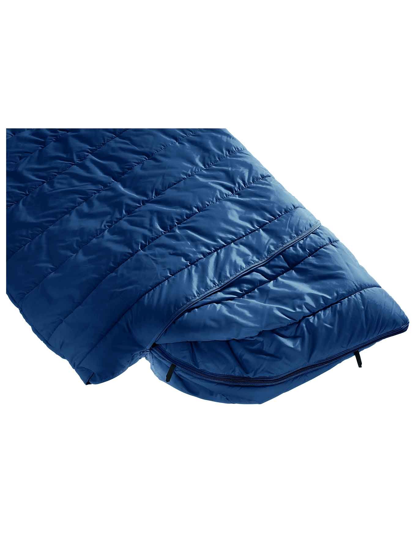 Sac de couchage enfant Deuter Starlight SQ Night Blue Redwood, extensible de 30 cm pour suivre la croissance dès 1,30 m. Forme rectangulaire 2 saisons, capuche ErgoHood, doublure douce et fermeture éclair intégrale transformable en couverture.