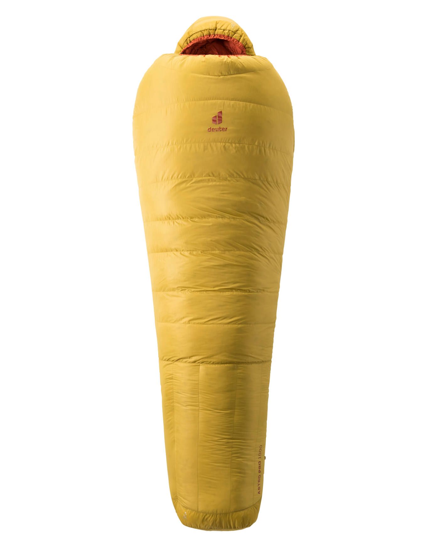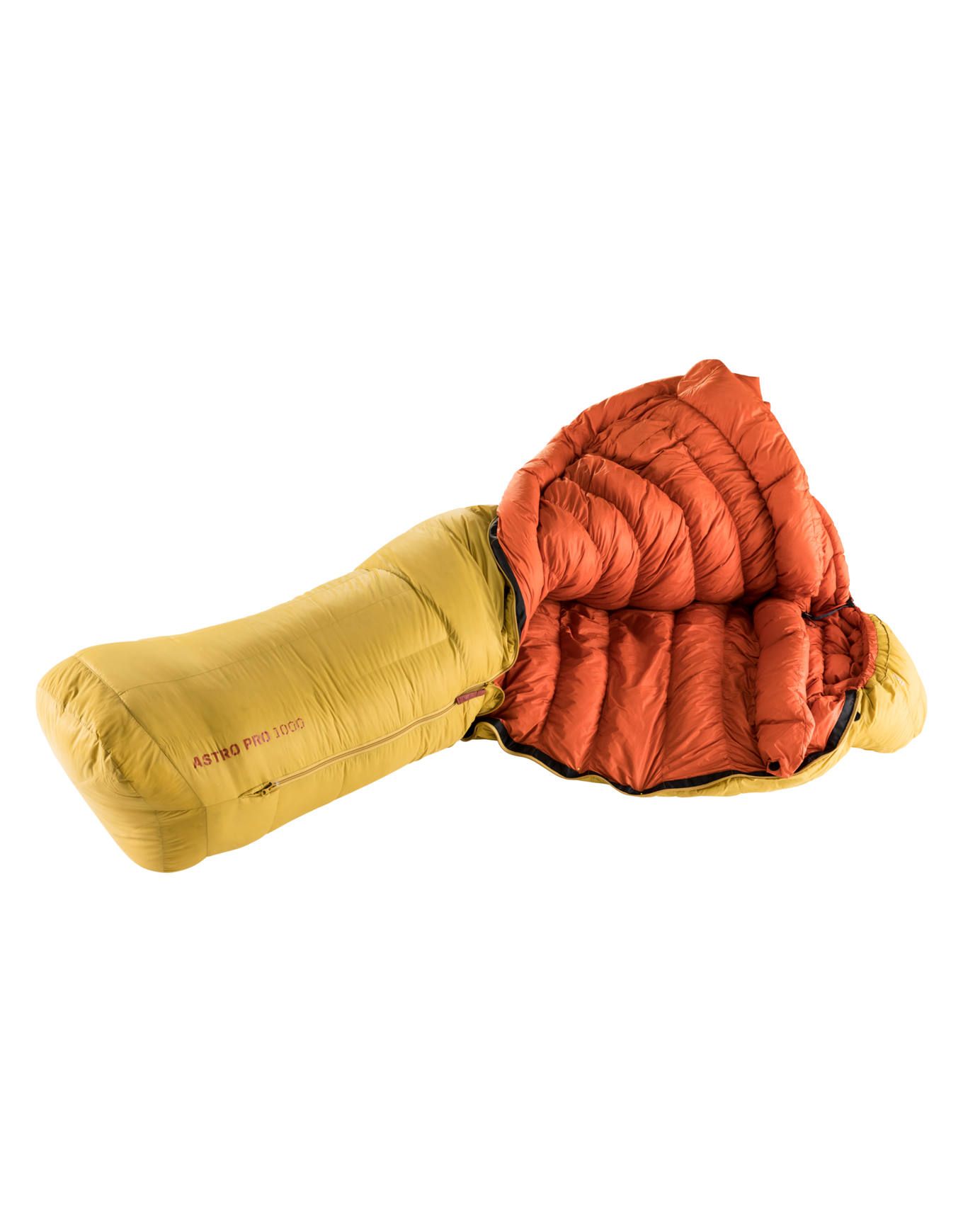 Sac de couchage Deuter Astro Pro 1000 Turmeric Redwood, 1500 g, -11 °C confort, 750 cuin, Thermo Stretch Inside, chambers trapézoïdales, Dryzone tête-pieds, ThermoHood, col thermique, Bluesign®.