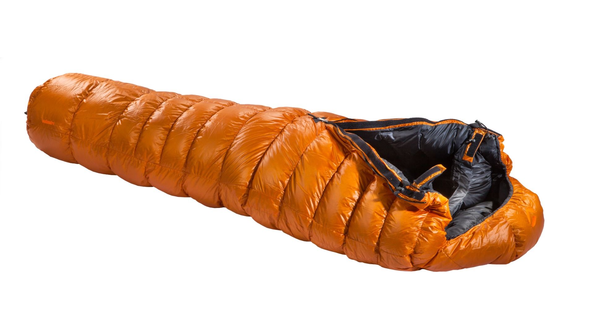 Sac de couchage d’expédition Valandré La Fayette, ultra-léger et haute performance, intègre la technologie Tubular Bell 2e génération, zip central, collerette Marie-Antoinette et genouillères isolantes pour affronter l’extrême en style alpin.